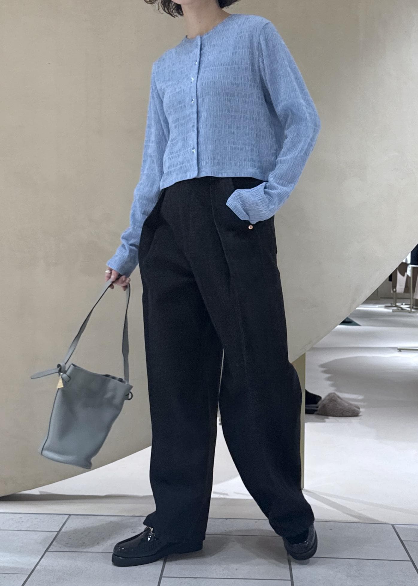 暖かくなった春にも着やすい素材感です。 -