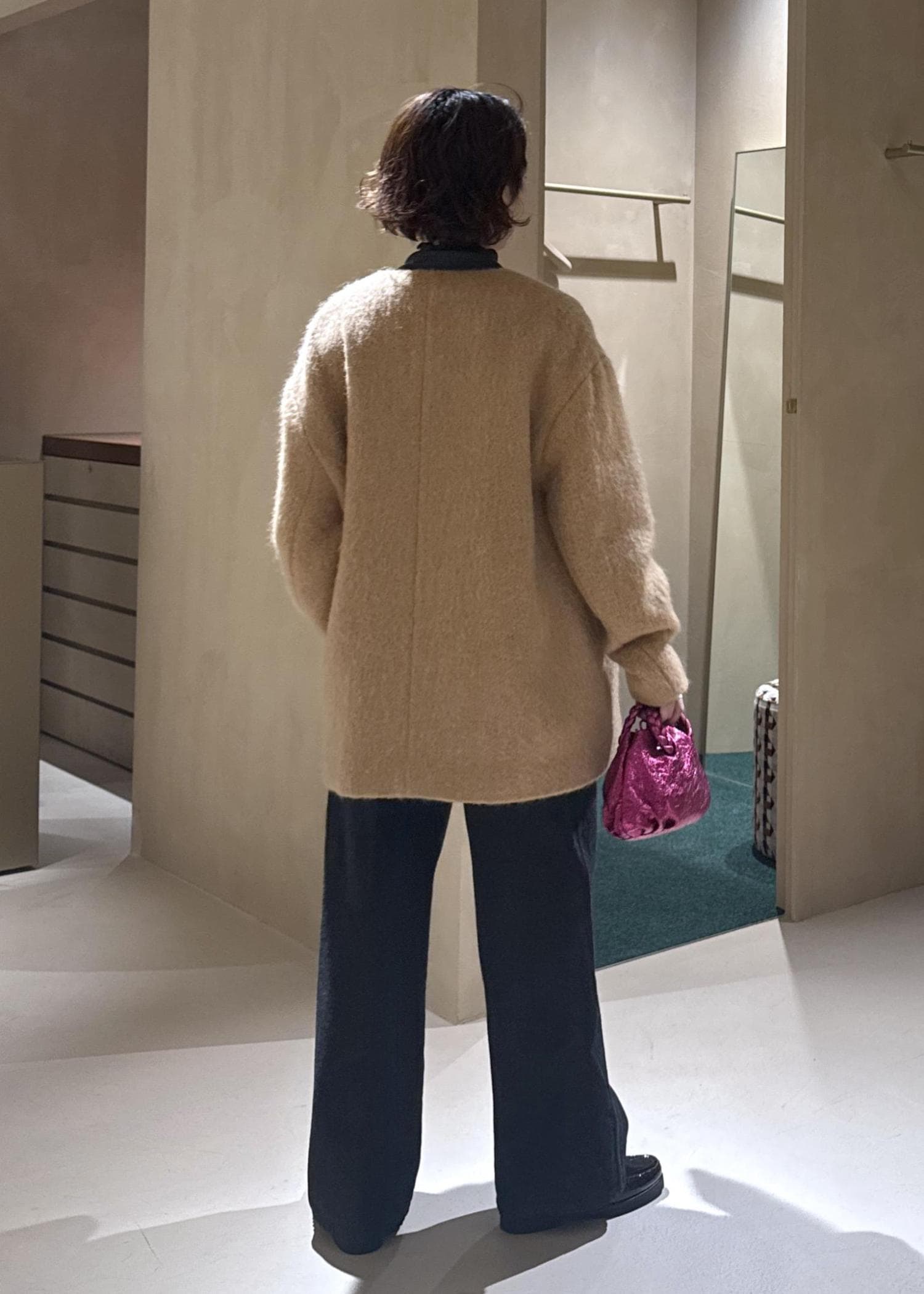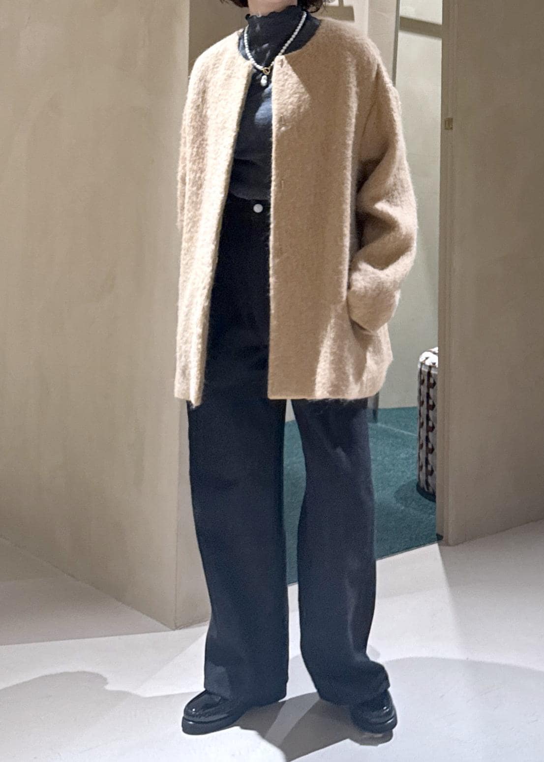 ROPÉウールモヘヤノーカラーミドル丈コートベージュ / F¥68,200レビュー156cmでFサイズを着用しました。