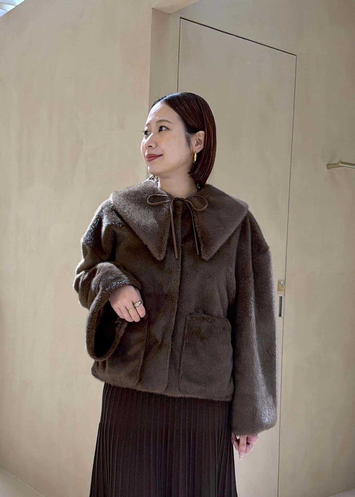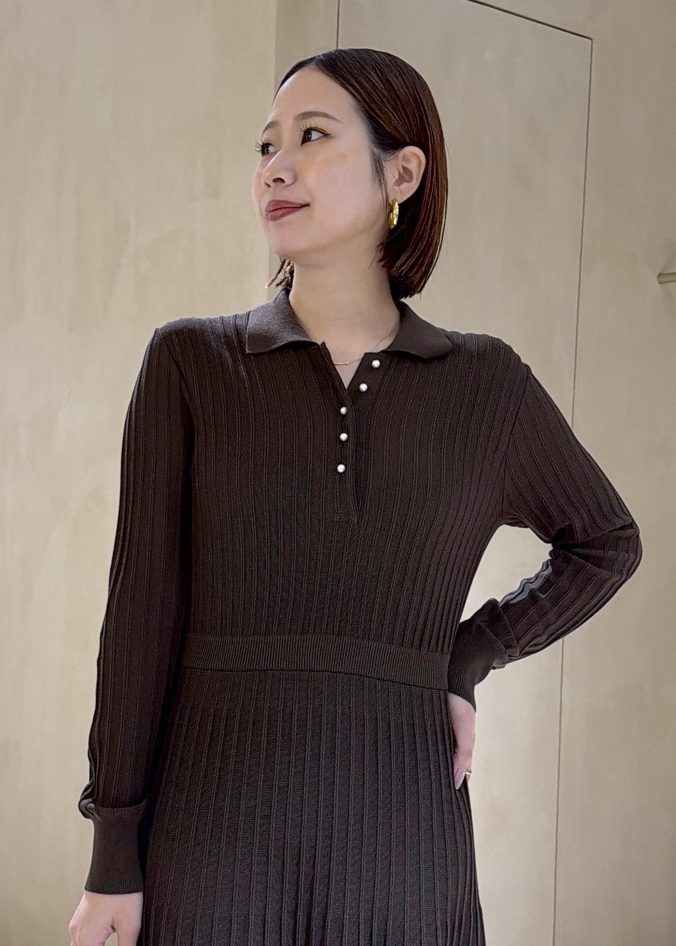 ROPÉパールボタンポロニットワンピース/イージーケアダークブラウン系 / F¥35,200レビュー161cmフリーサイズ着用。