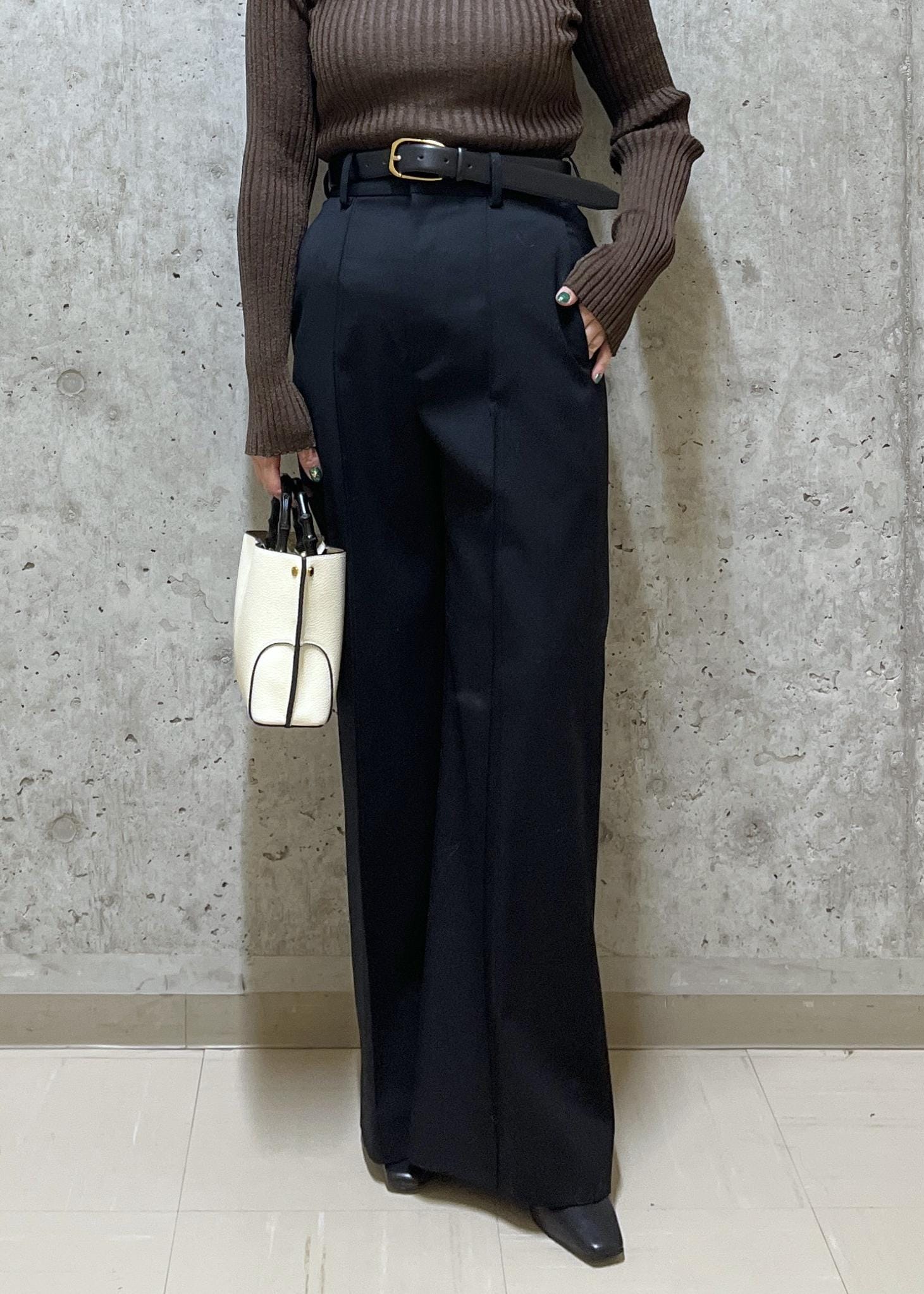 ハイウエストとセンタープレスで脚長効果があるので、低身長の方でも格好良く履けるパンツです。 -