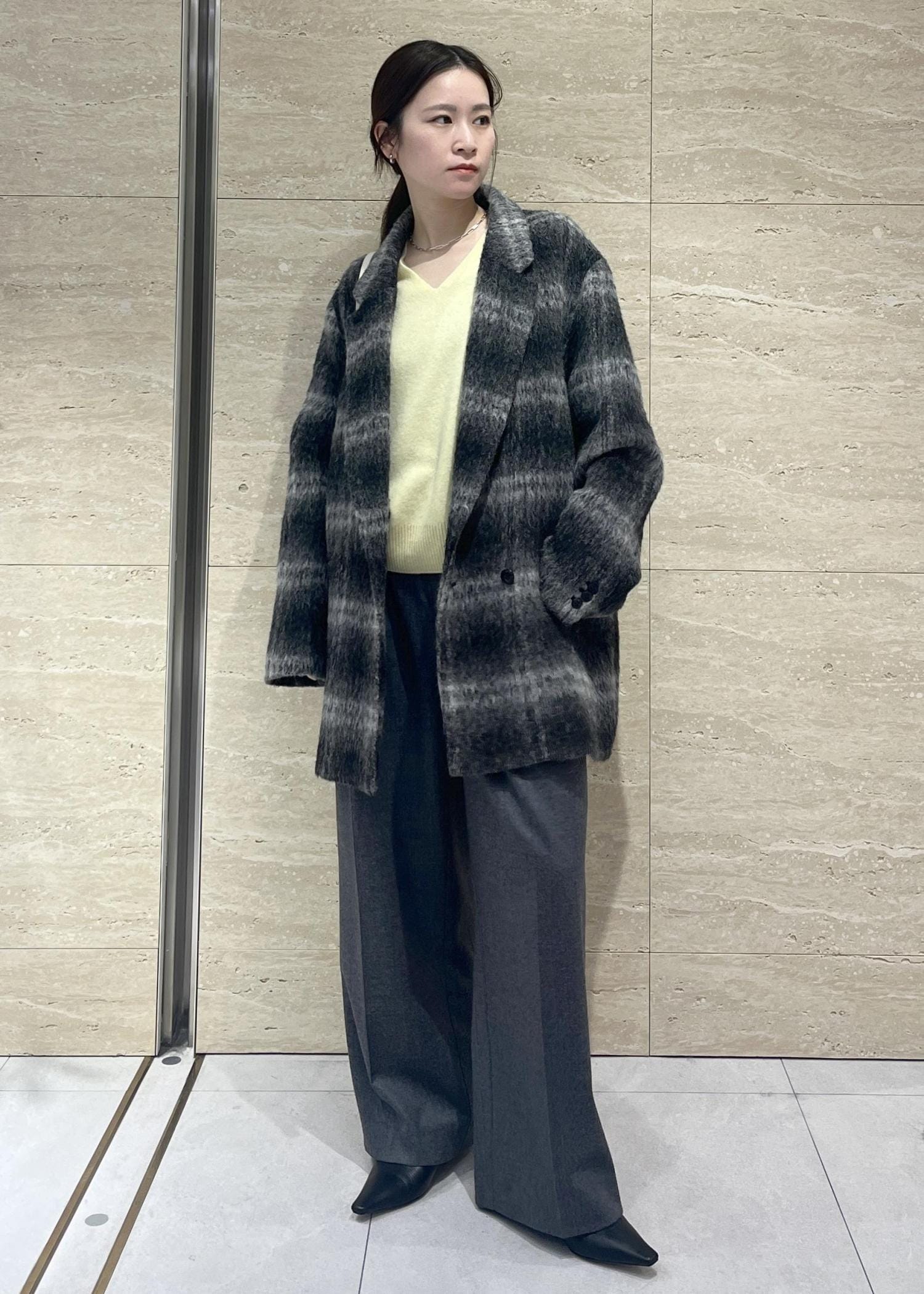 モノトーンなら柄物にも挑戦しやすいです♡