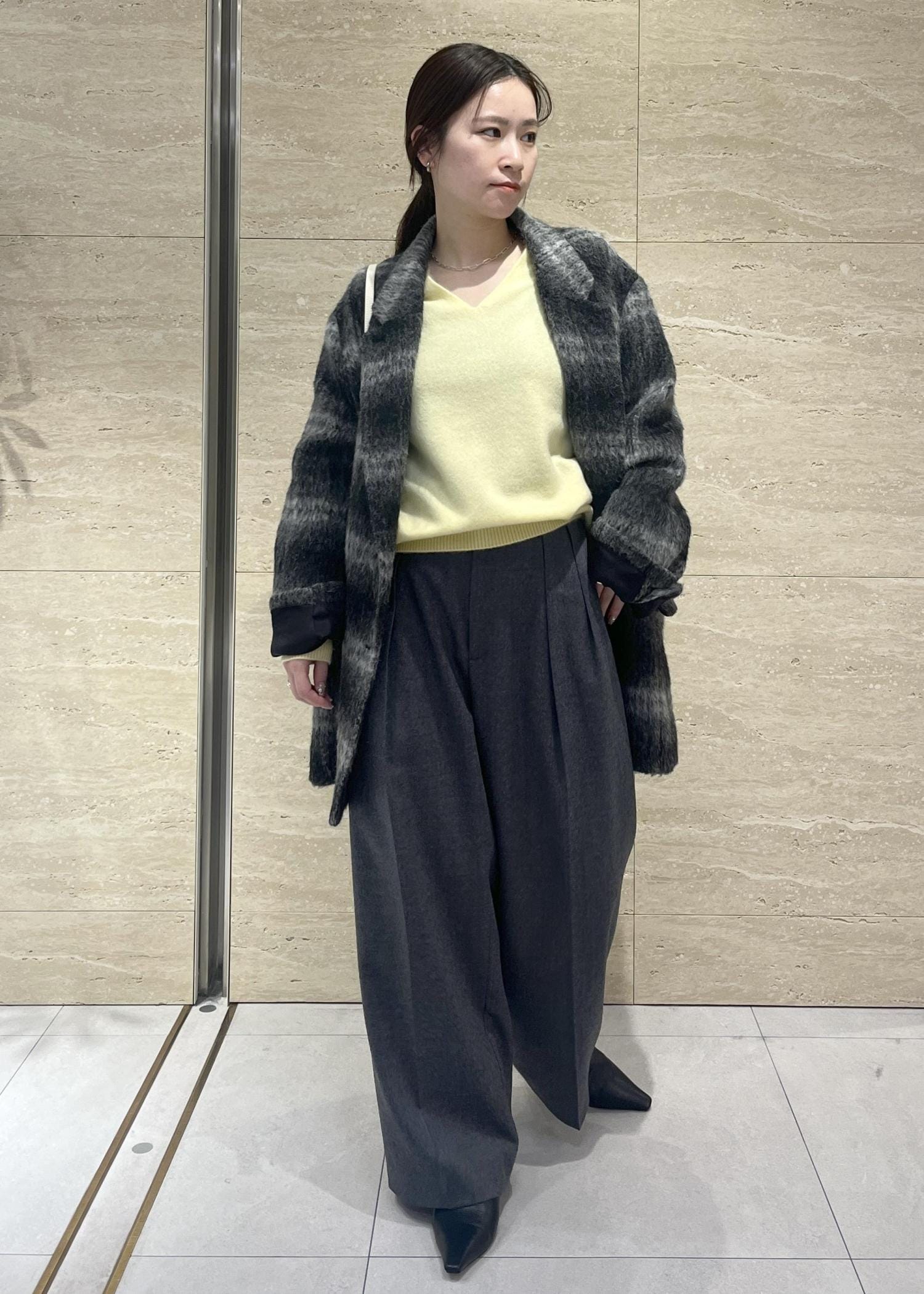 全体的にオーバーサイズなので、トップスに厚手のニットなども着ていただけます。