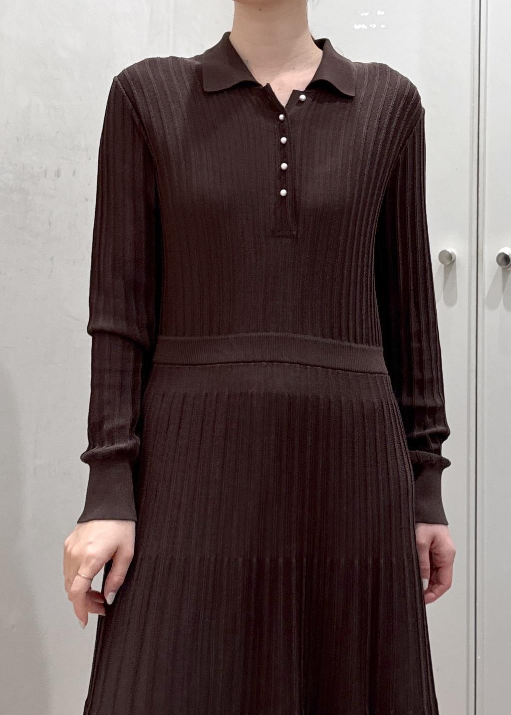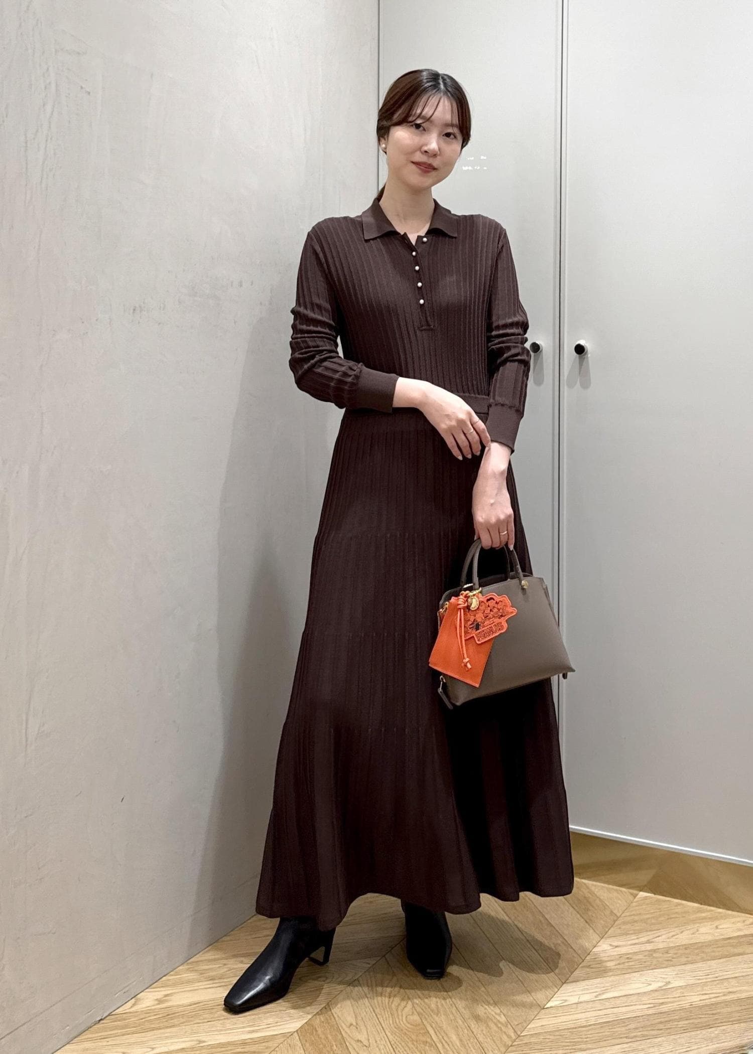 ROPÉパールボタンポロニットワンピース/イージーケアダークブラウン系 / F¥35,200レビュー程良くフィット感がありますが