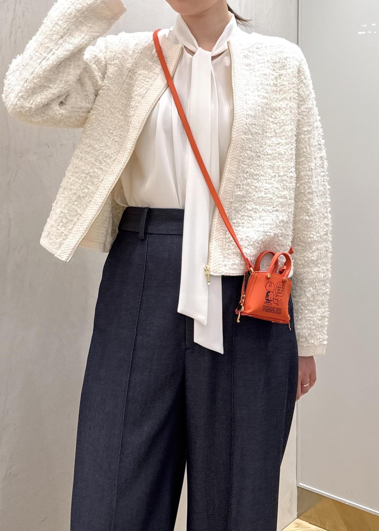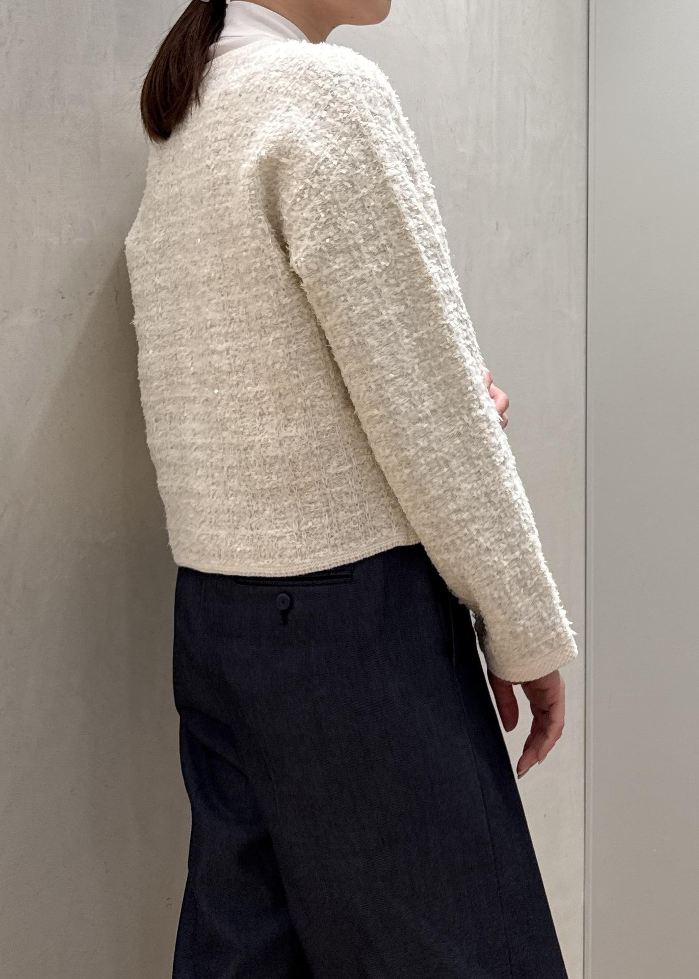 ROPÉツイードZIPノーカラーカーディガン/イージーケアキナリ / F¥25,300レビュースパンコールも入った華やかさのある