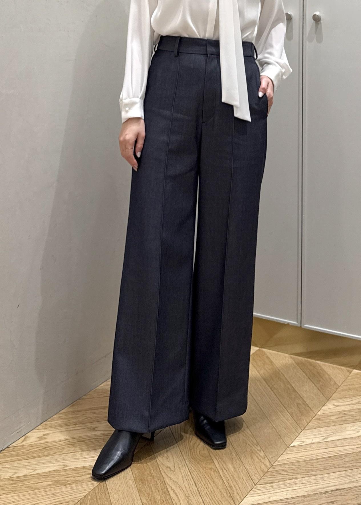 ROPÉ梳毛ギャバ プリーテッド ワイドパンツネイビー / 36¥29,700レビュー身長160cm、36サイズ着用。
