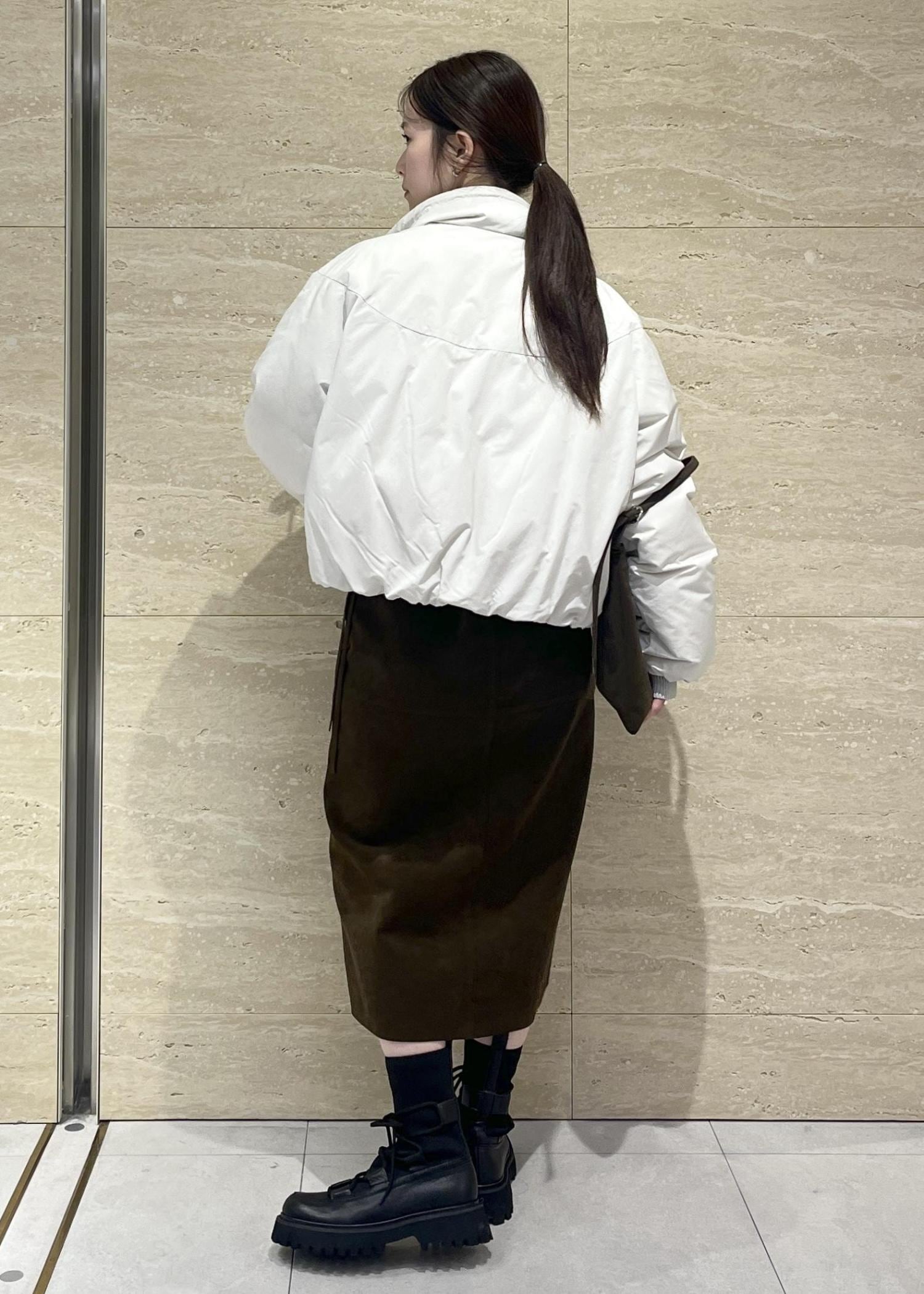 クロップド丈の着膨れしにくいダウンなので、小柄な方でも合わせやすいです。 -