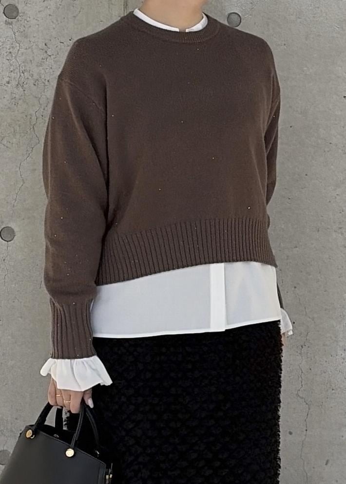 ROPÉスーパーファインメリノウールスパンコールニットブラウン / F¥25,300レビュー162センチ 普段トップス38サイズ