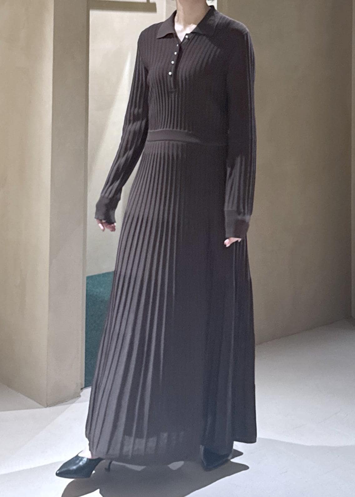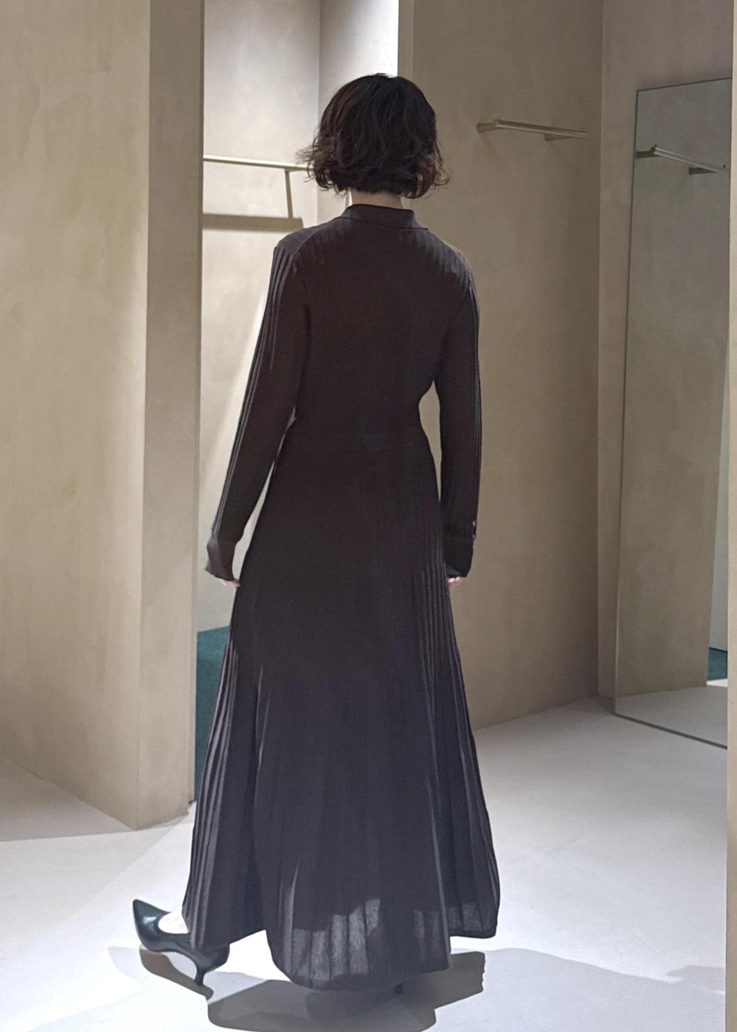 ROPÉパールボタンポロニットワンピース/イージーケアダークブラウン系 / F¥35,200レビュー156cmでFサイズを着用しました。
