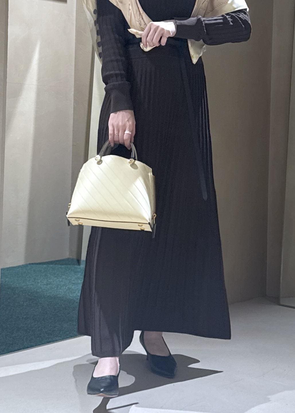 エンボス加工と金具がポイントになってくれるのでシンプルなカラー合わせでもポイントになってくれます。