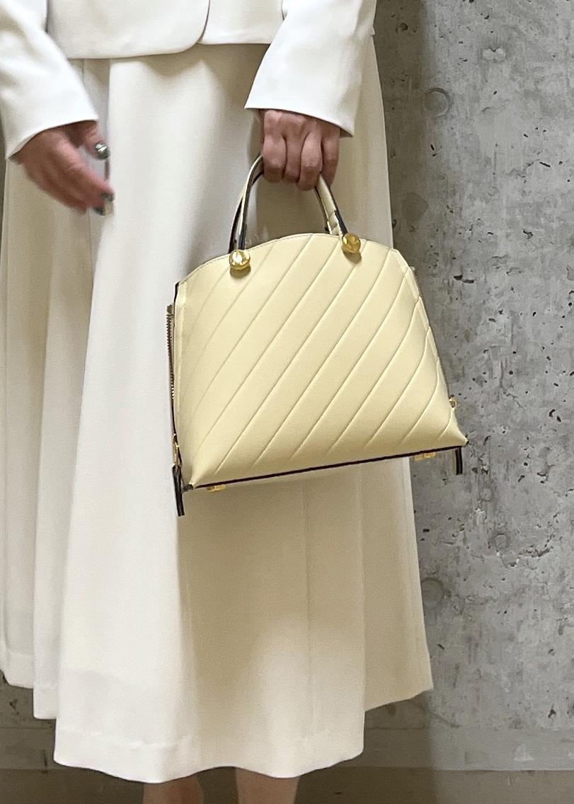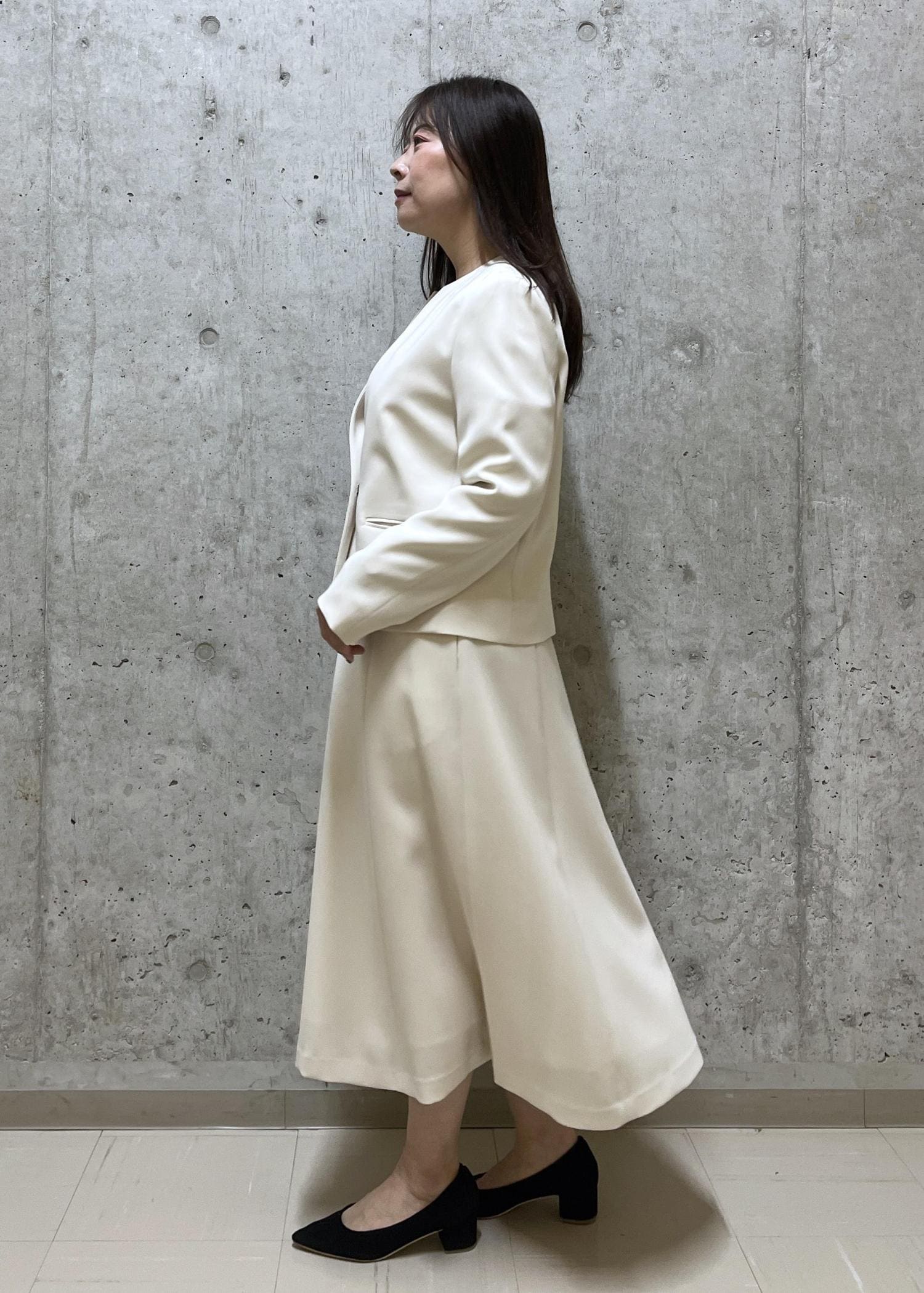 淡いベージュ系のカラーで合わせた清潔感のある印象で、セレモニーからお仕事まで使えます。