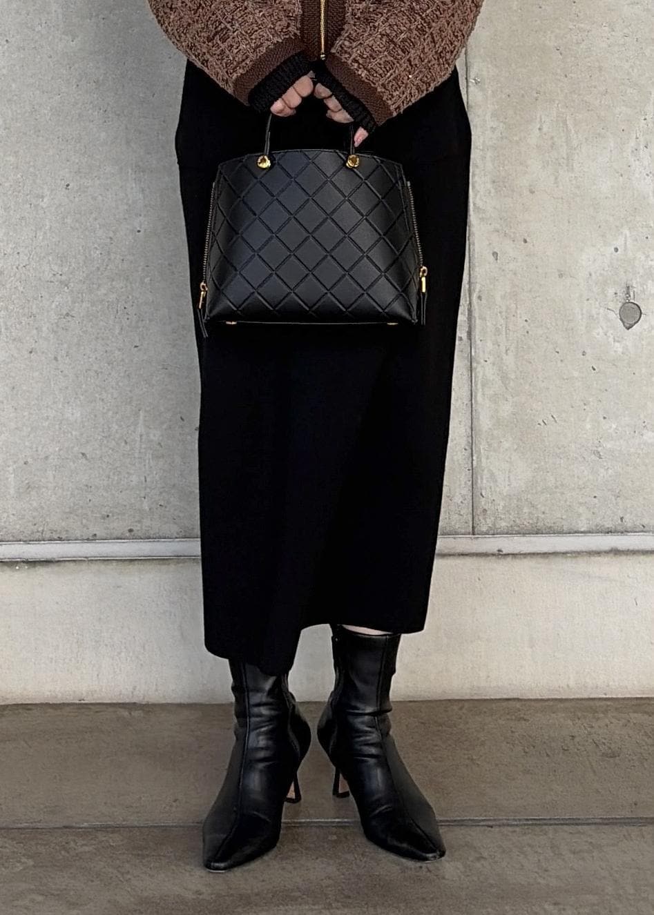 真っ直ぐの縦長ストレートシルエットですっきり、キレイめにもカジュアル使いもおすすめです。