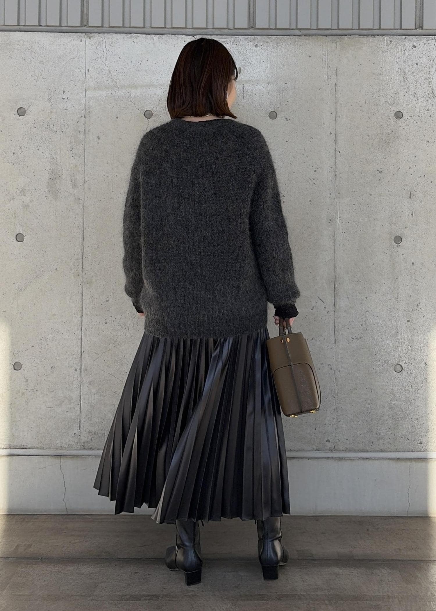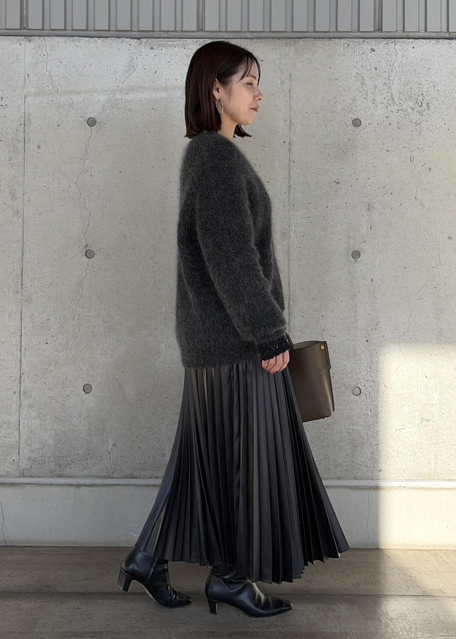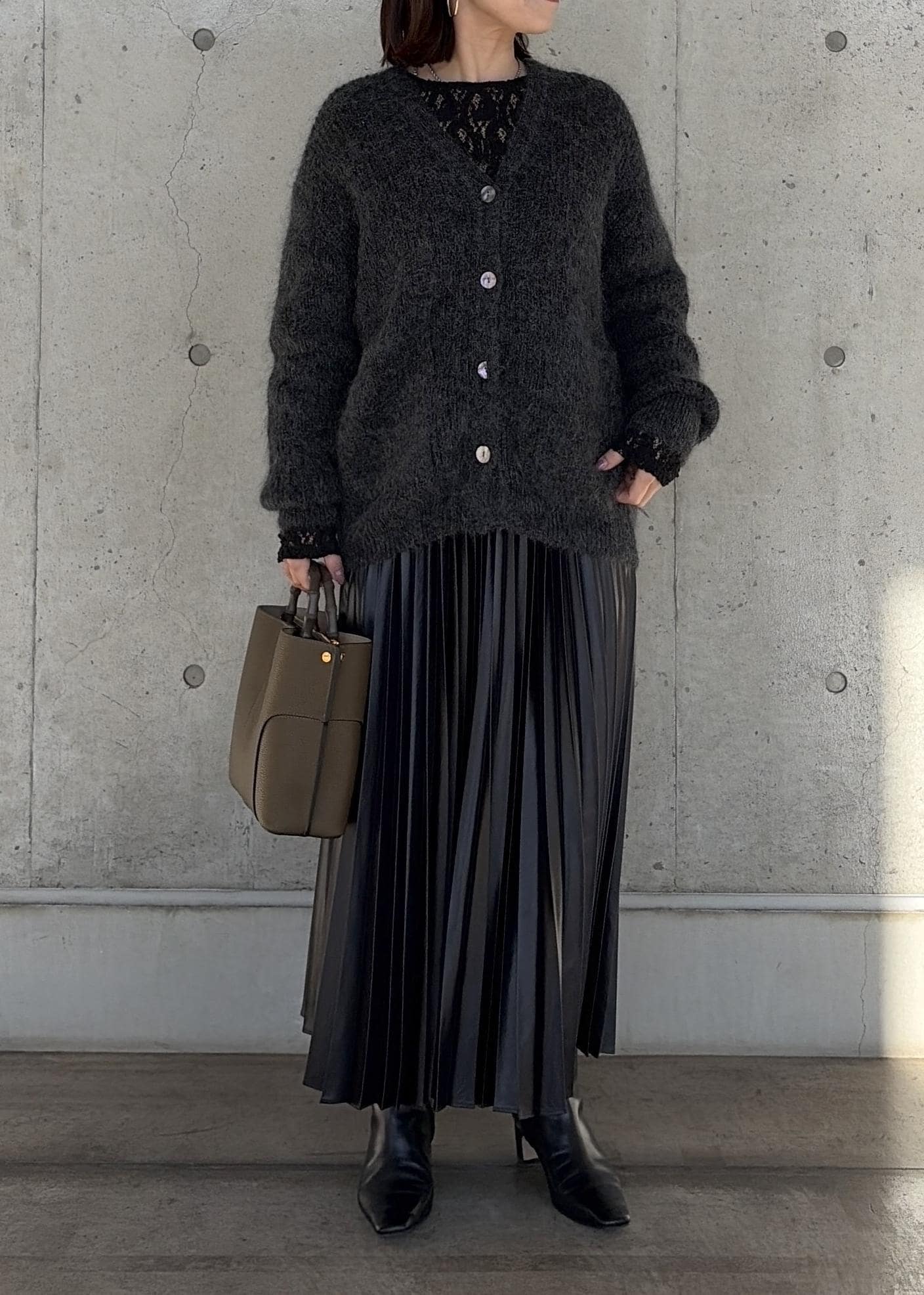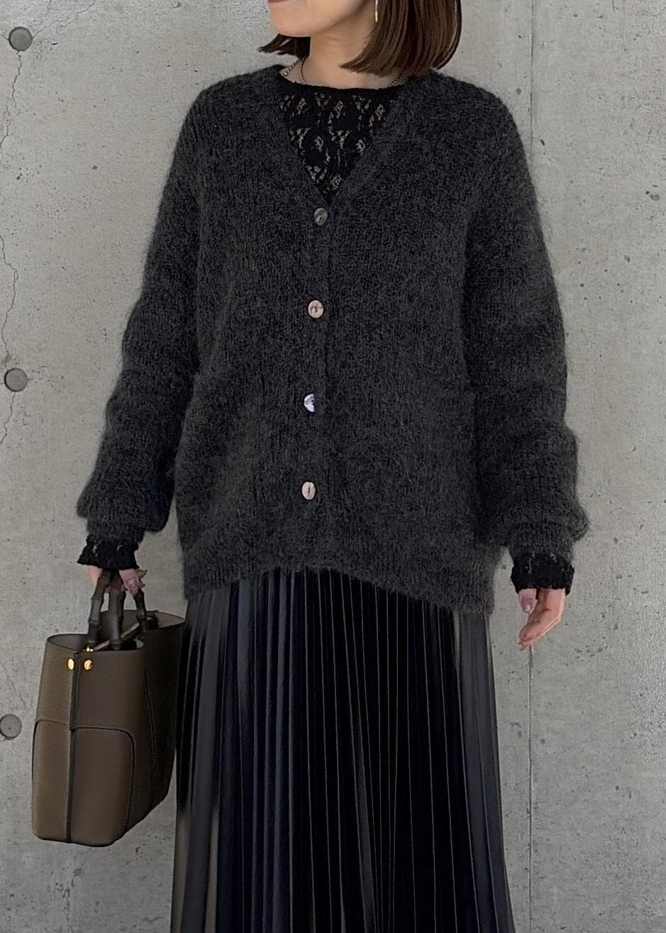 ROPÉスーパーキッドモヘヤVネックカーディガン/イージーケアチャコール / F¥41,800レビュー身長156cm、Fサイズ着用。