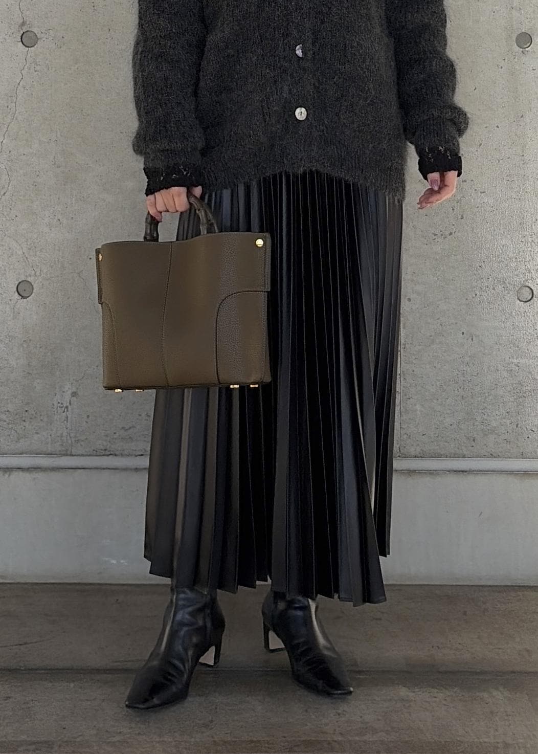 レザー見えする光沢は、トレンド感のあるキレイめ。