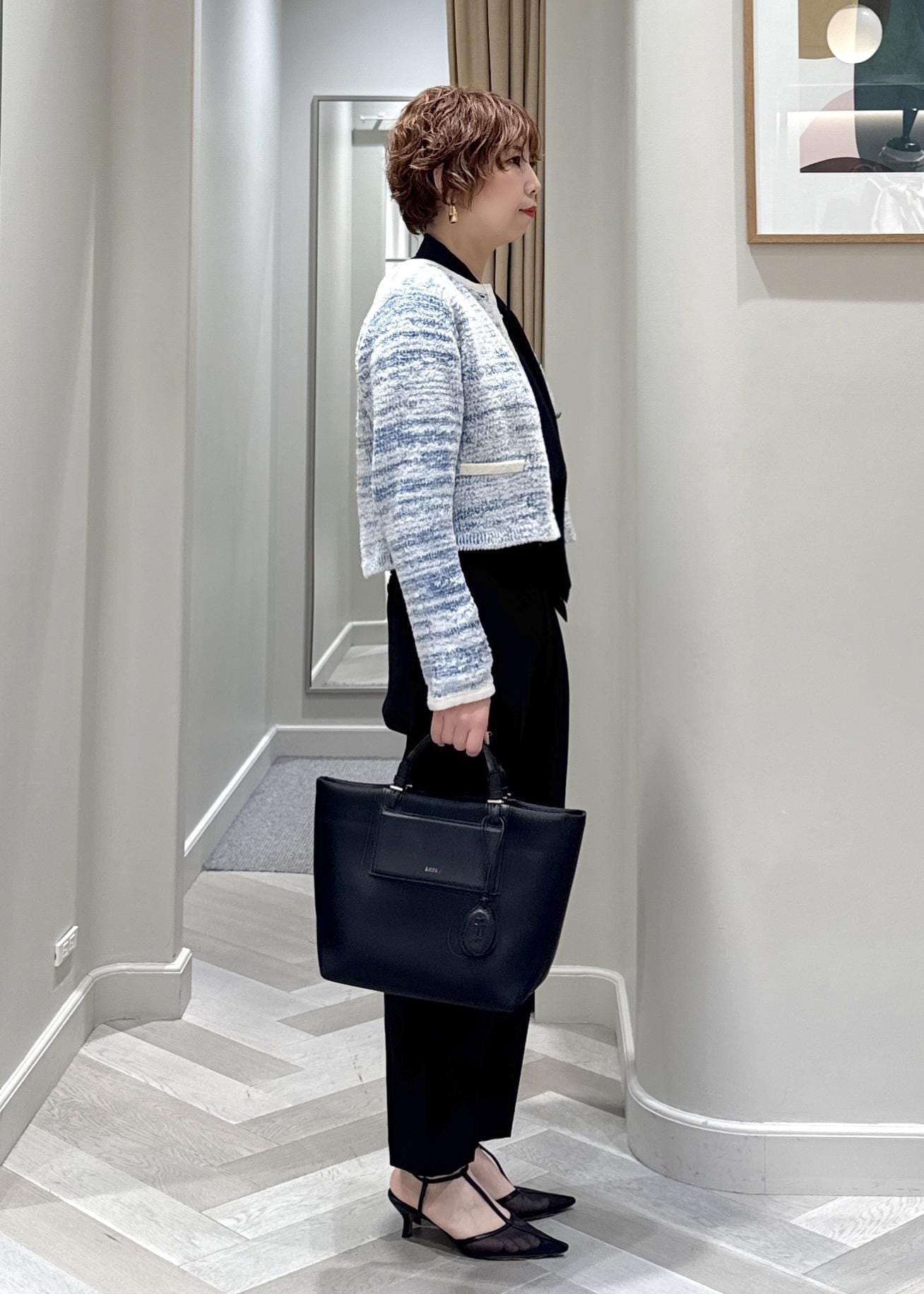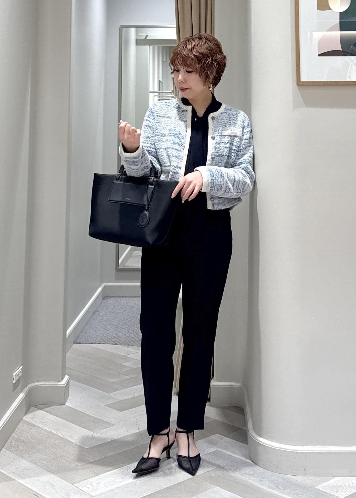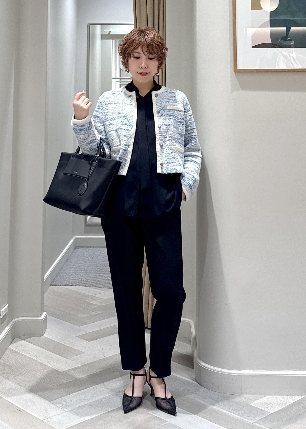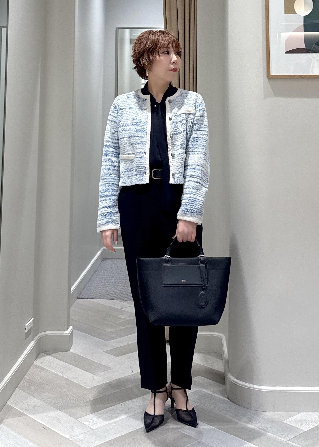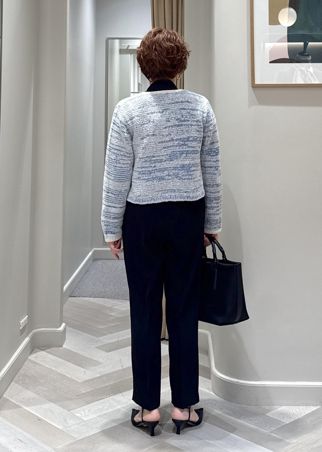 ROPÉツイードニットショート丈カーディガン/イージーケアブルー / F¥37,400レビュージャストサイズのサイズ感。