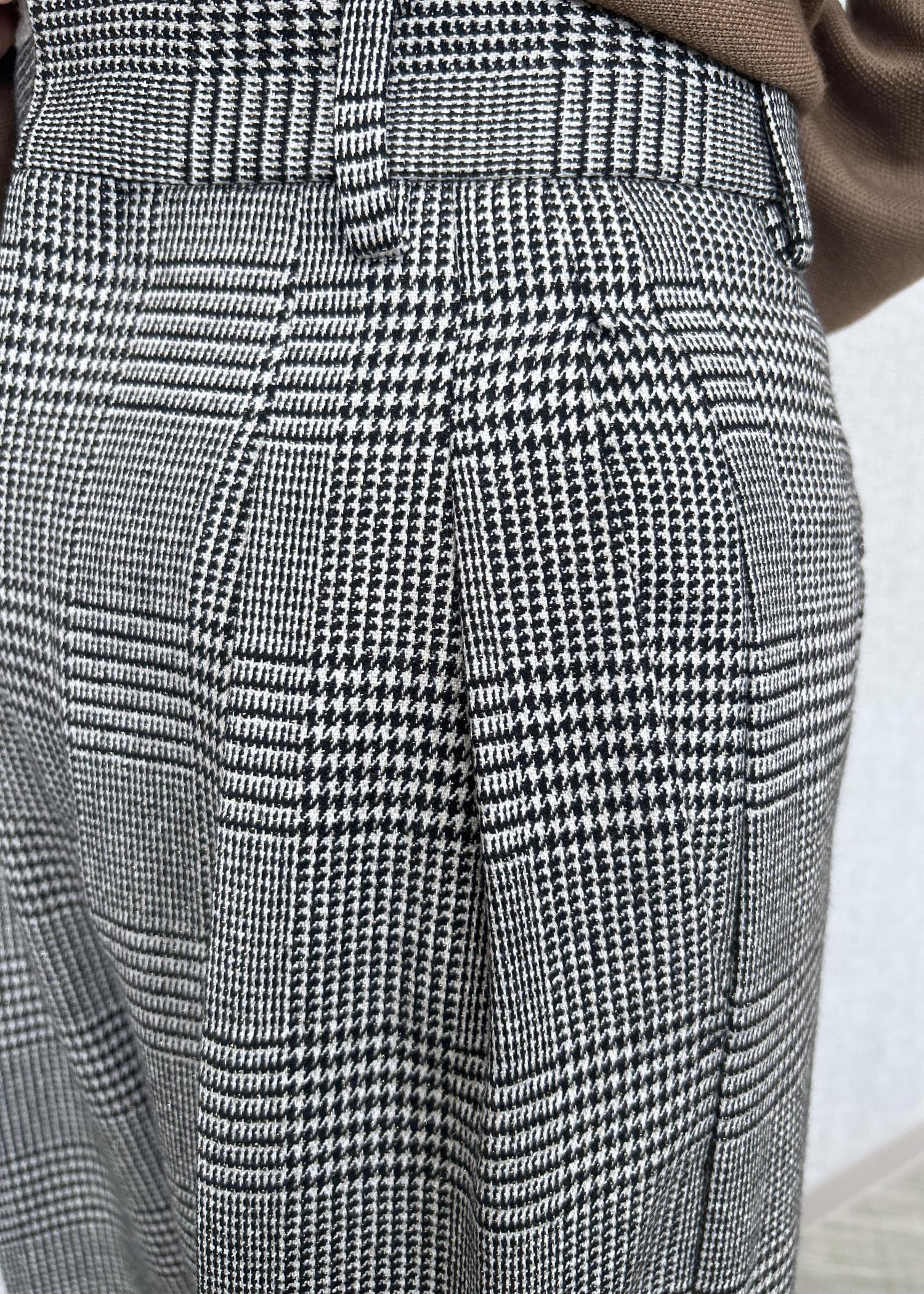 ROPÉウールレーヨンクラシック2タックパンツ(ヘリンボーン/グレンチェック)/セットアップ対応ブラック系 / 36¥19,250レビュー着丈は4.5cmのヒールと合わせた場合だと床から5〜6cm程上迄の長さです。