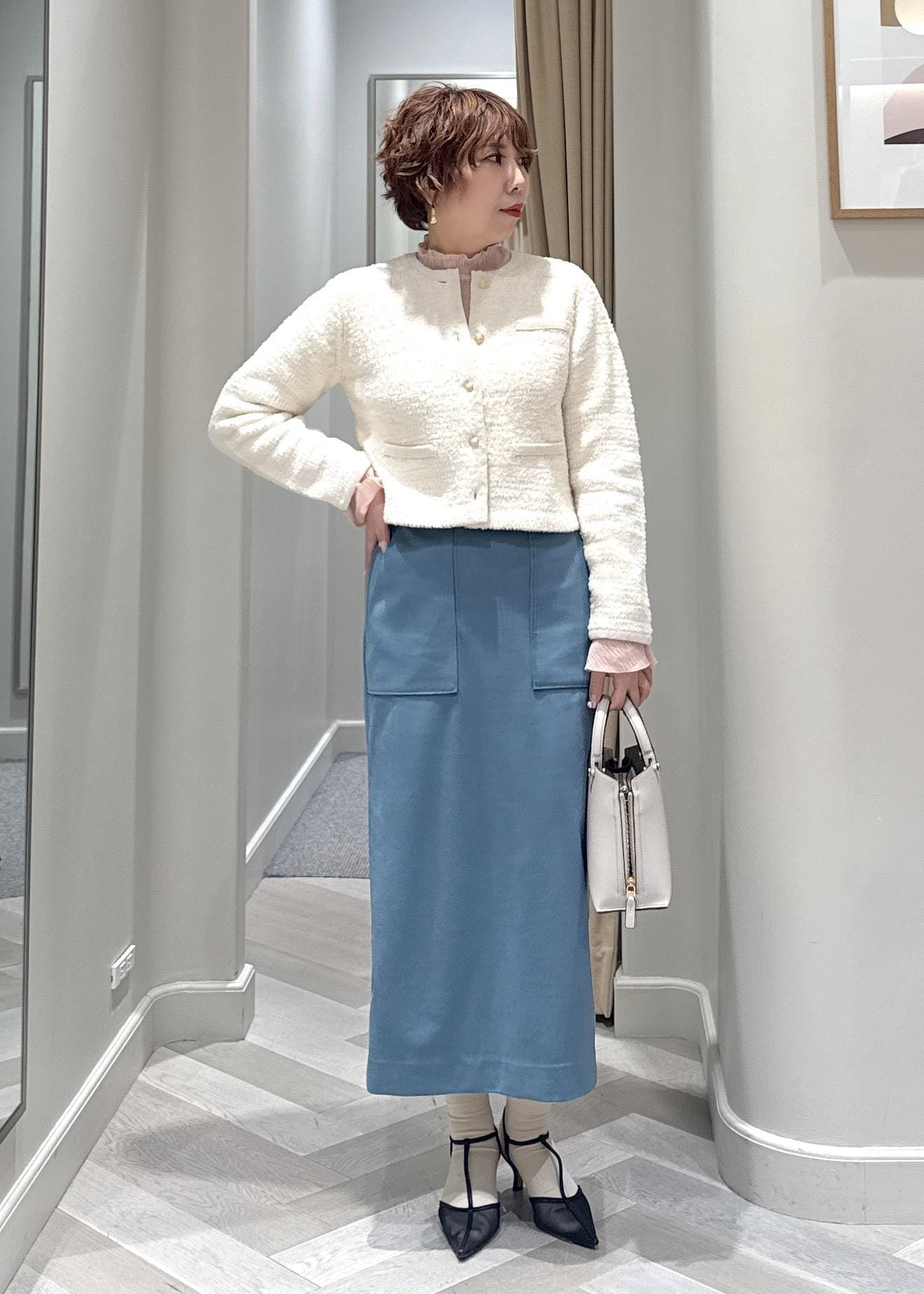 ROPÉ[美人スカート]スエードポケット付きタイトスカート/イージーケアブルー / 36¥17,710レビュー程よく厚みのある生地感で秋口から春先まで