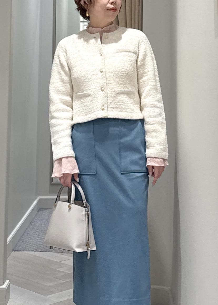 ROPÉツイードニットショート丈カーディガン/イージーケアキナリ / F¥37,400レビュージャストサイズのサイズ感。