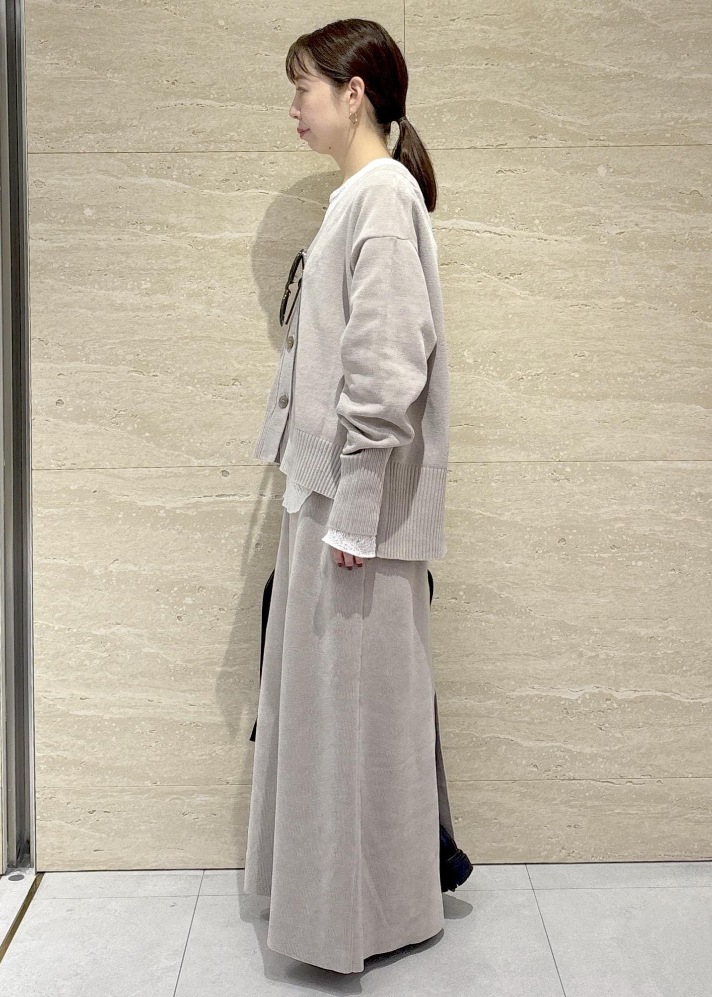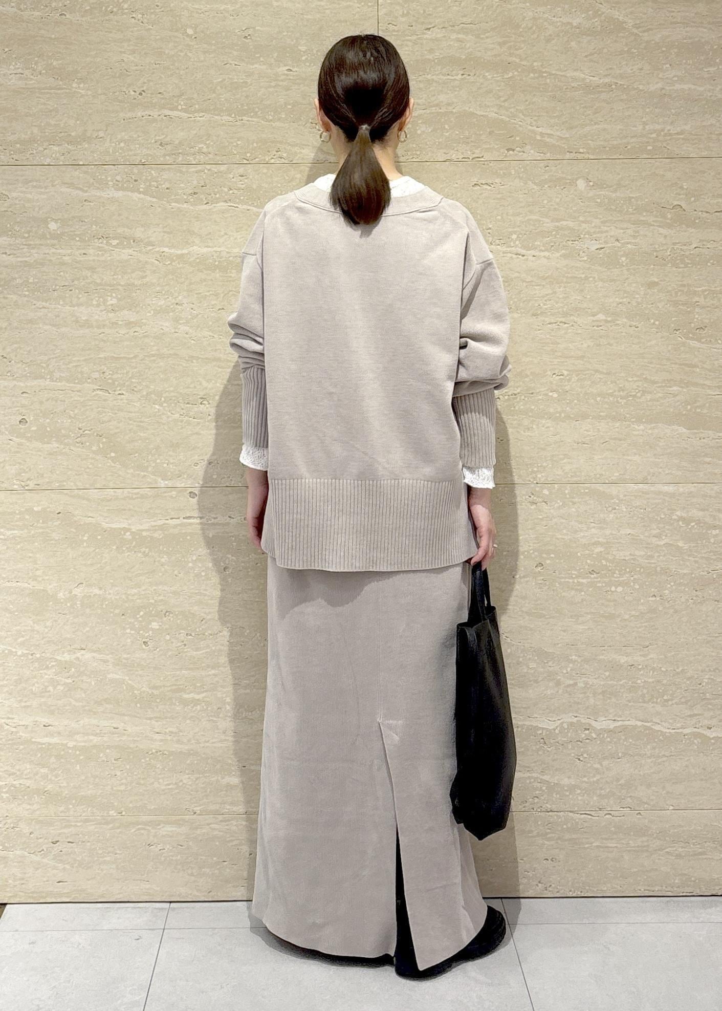 SALON adam et ropéナローロングスカート-CreamyCotton /クリーミーコットン-ベージュ系 / F¥23,100レビュー裾にかけて少し広がりがあり、タイトすぎず身体のラインは出ませんでした。