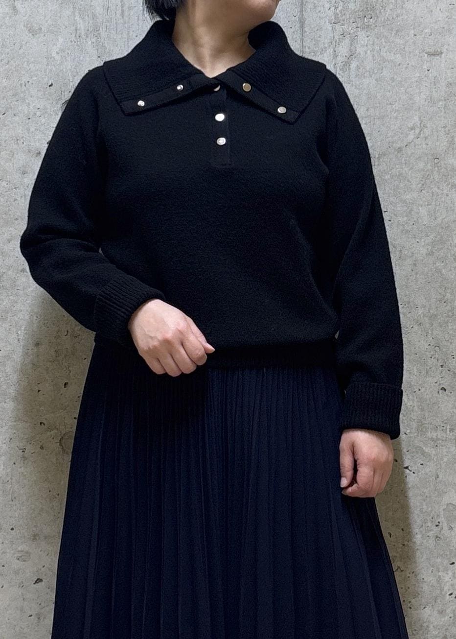 ROPÉ接結ウールドットボタンハイネックニット/イージーケアブラック / F¥28,600レビュー152cmでFサイズ着用