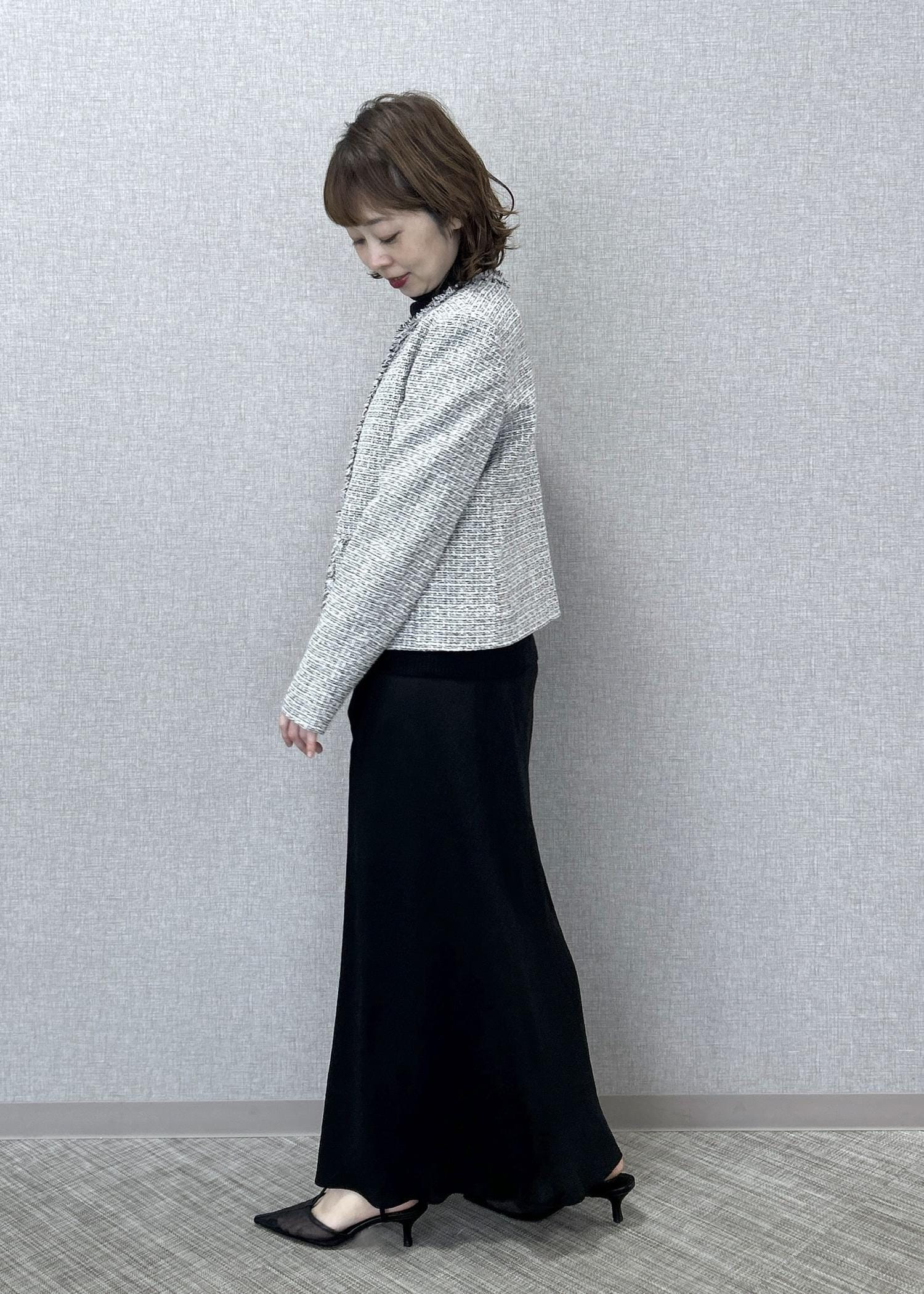 ROPÉミックスツイードノーカラージャケット/26SSブラック系 / 38¥42,900レビュー着丈はヒップの上辺り迄の長さです。