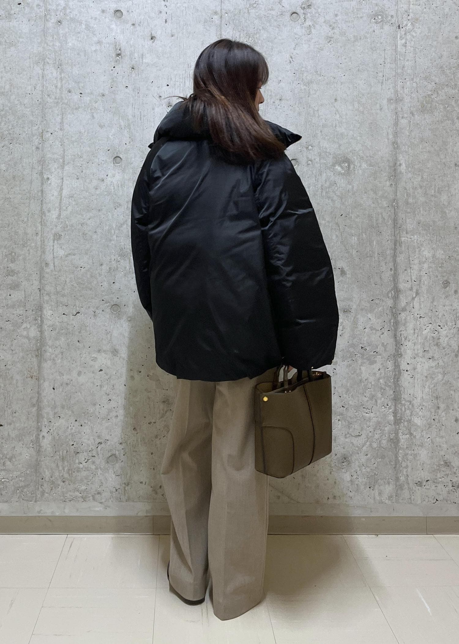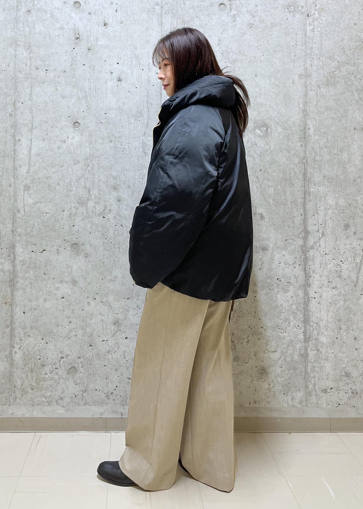 起毛パンツとダウンで、寒い日の暖かコーデです。