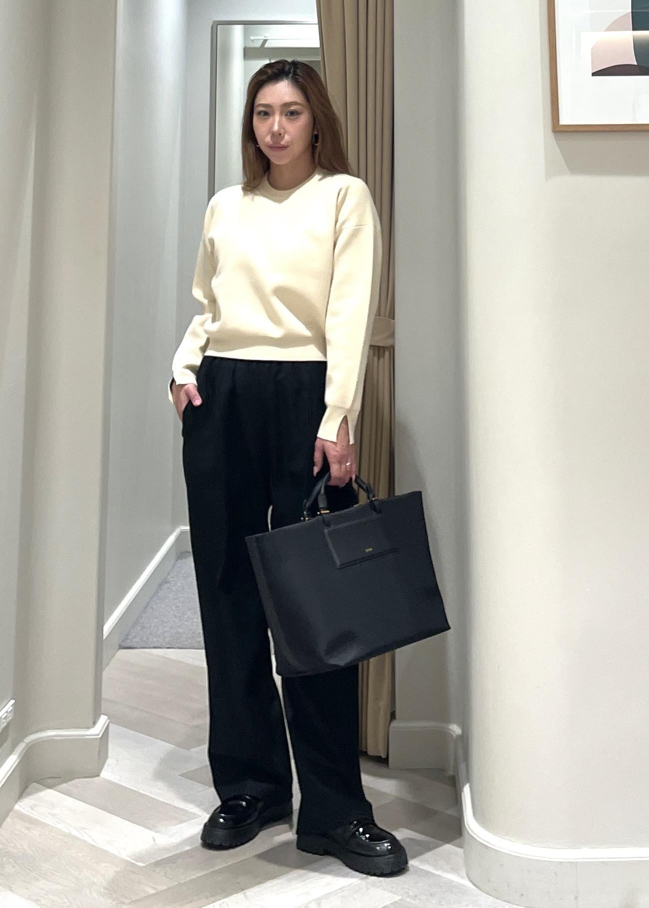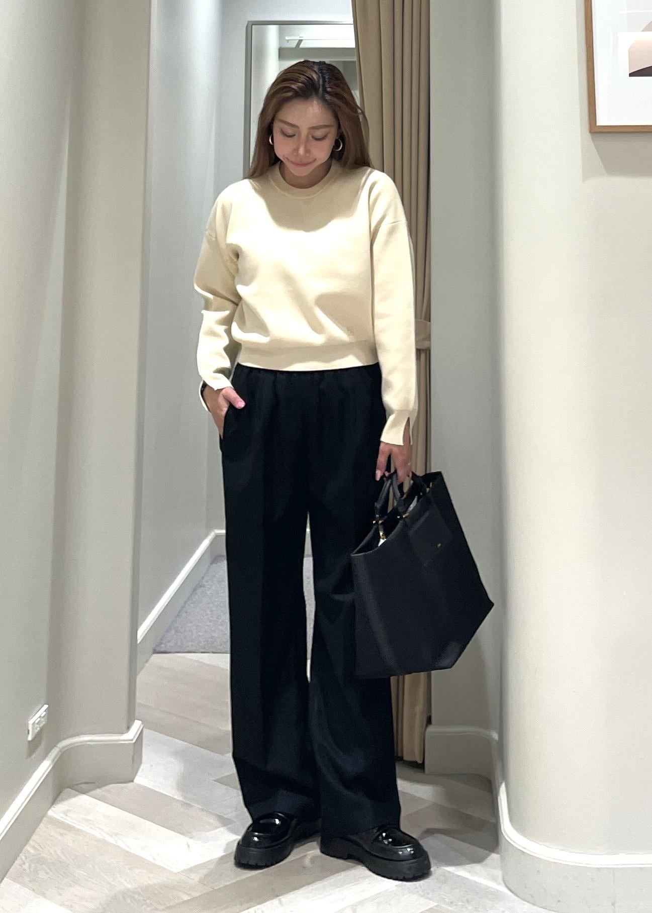ROPÉウールフランネルタックイージーパンツ/イージーケア・セットアップ対応ブラック / 38¥17,710レビュー丈感は160cmが着用で、5cm程のヒールを履いて