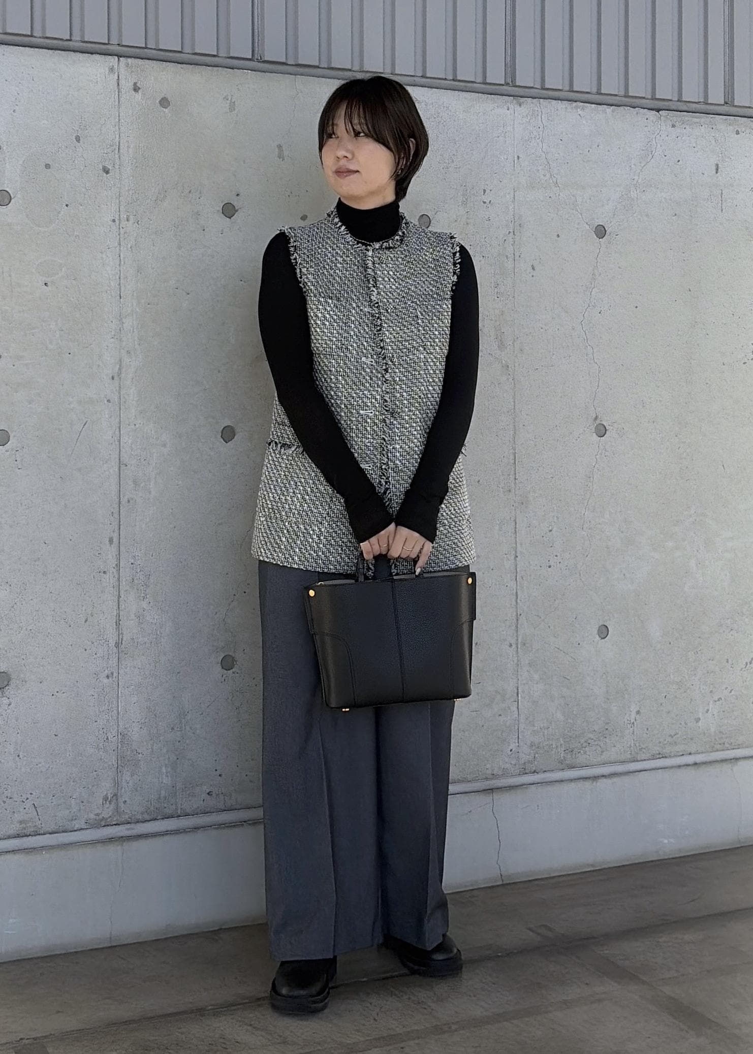 ROPÉミックスツイードジレベスト/26SSブラック系 / F¥39,600レビュー162センチ 普段トップス38サイズ