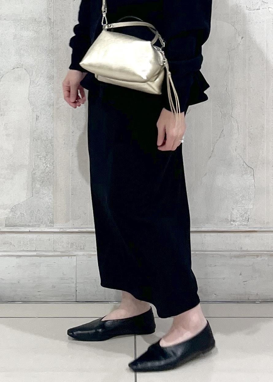 小物はシャンパンゴールドのミニバッグに