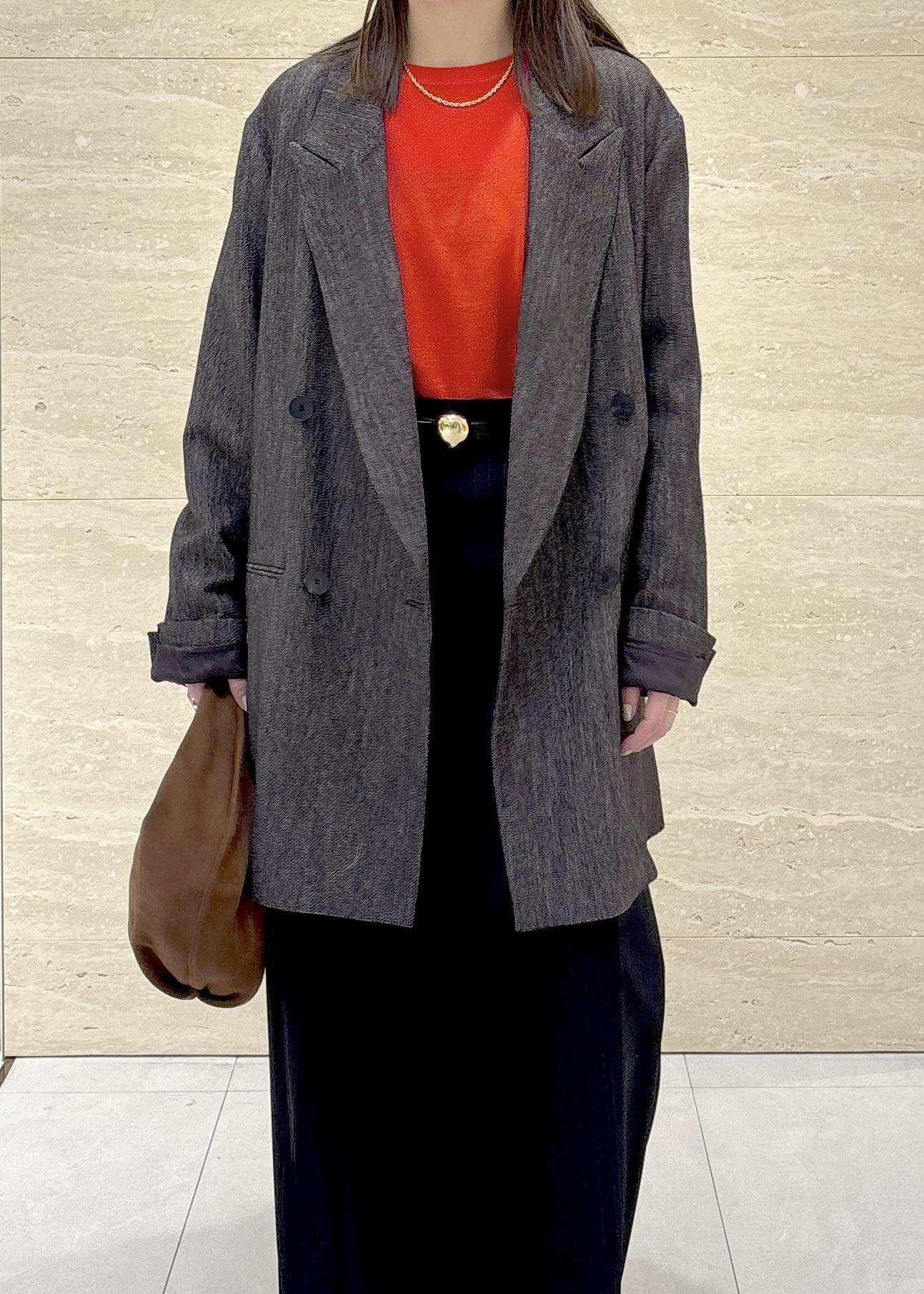 着丈もヒップ下で、アウターのようなシルエットになりました。