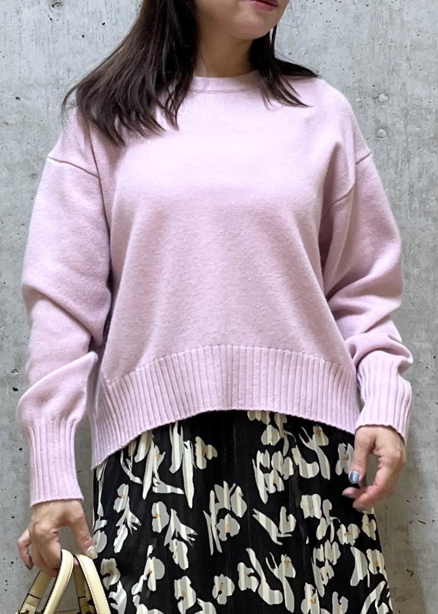 ROPÉスーパーファインメリノウールスパンコールニットピンク / F¥25,300レビュー前は短めで、後ろはヒップが半分まで隠れる程の丈でした。