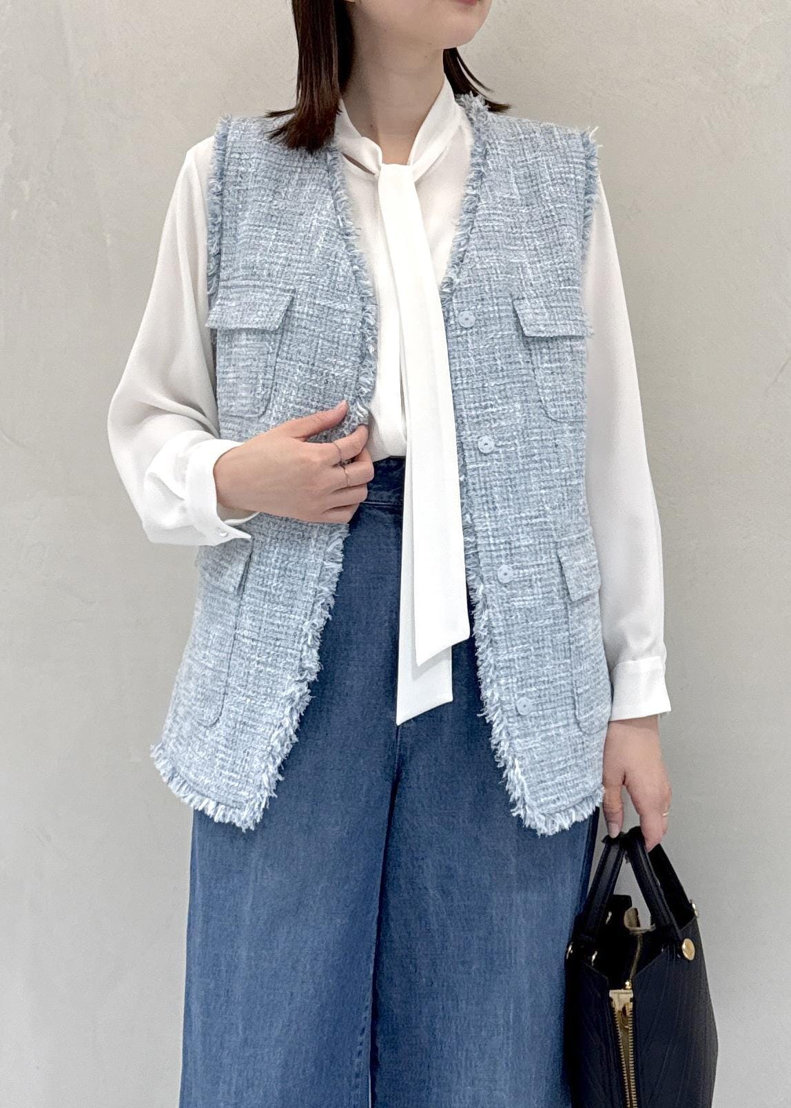 ROPÉツイードVネックジレサックス / F¥48,400レビュー軽くて柔らかいツイード素材。