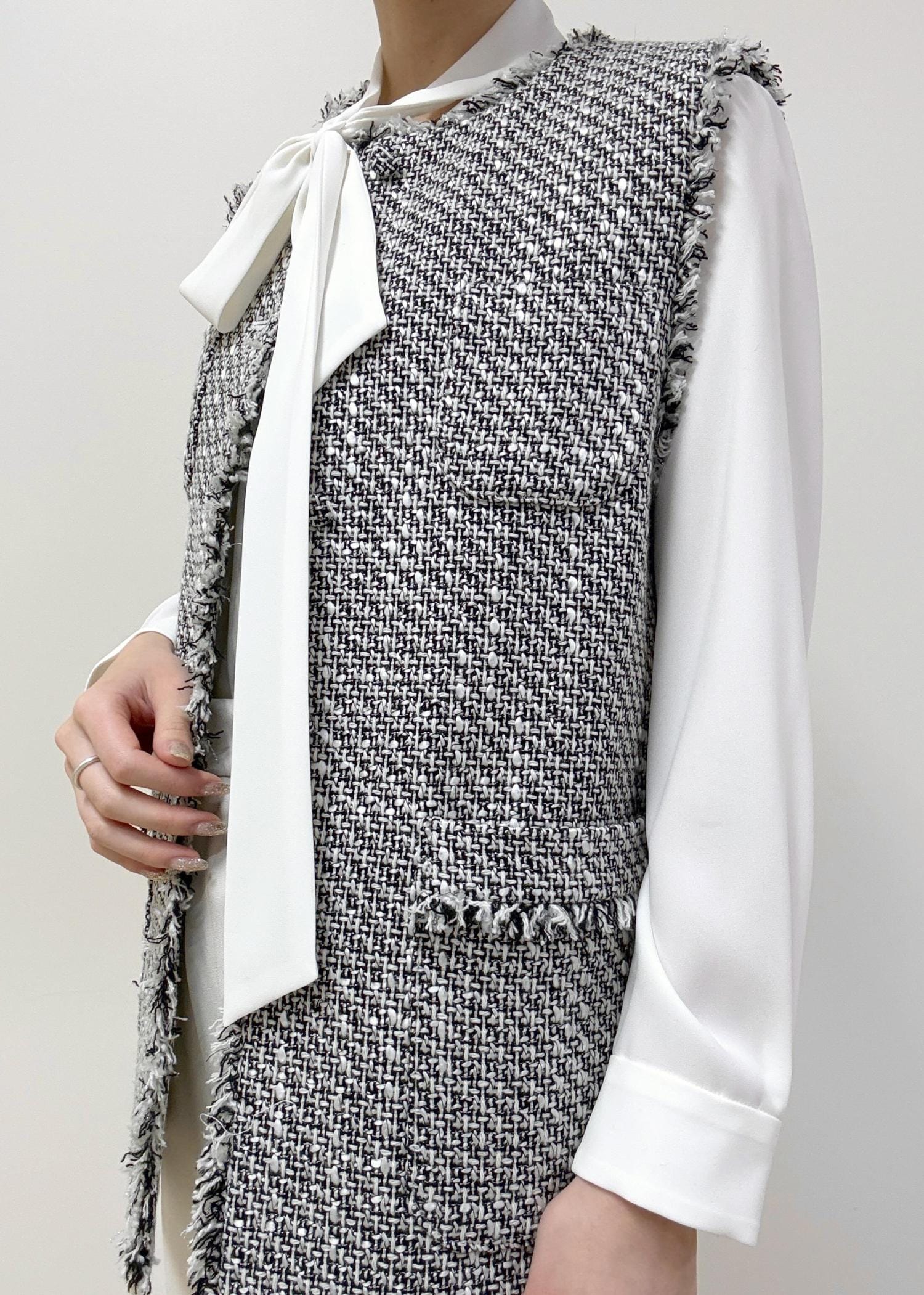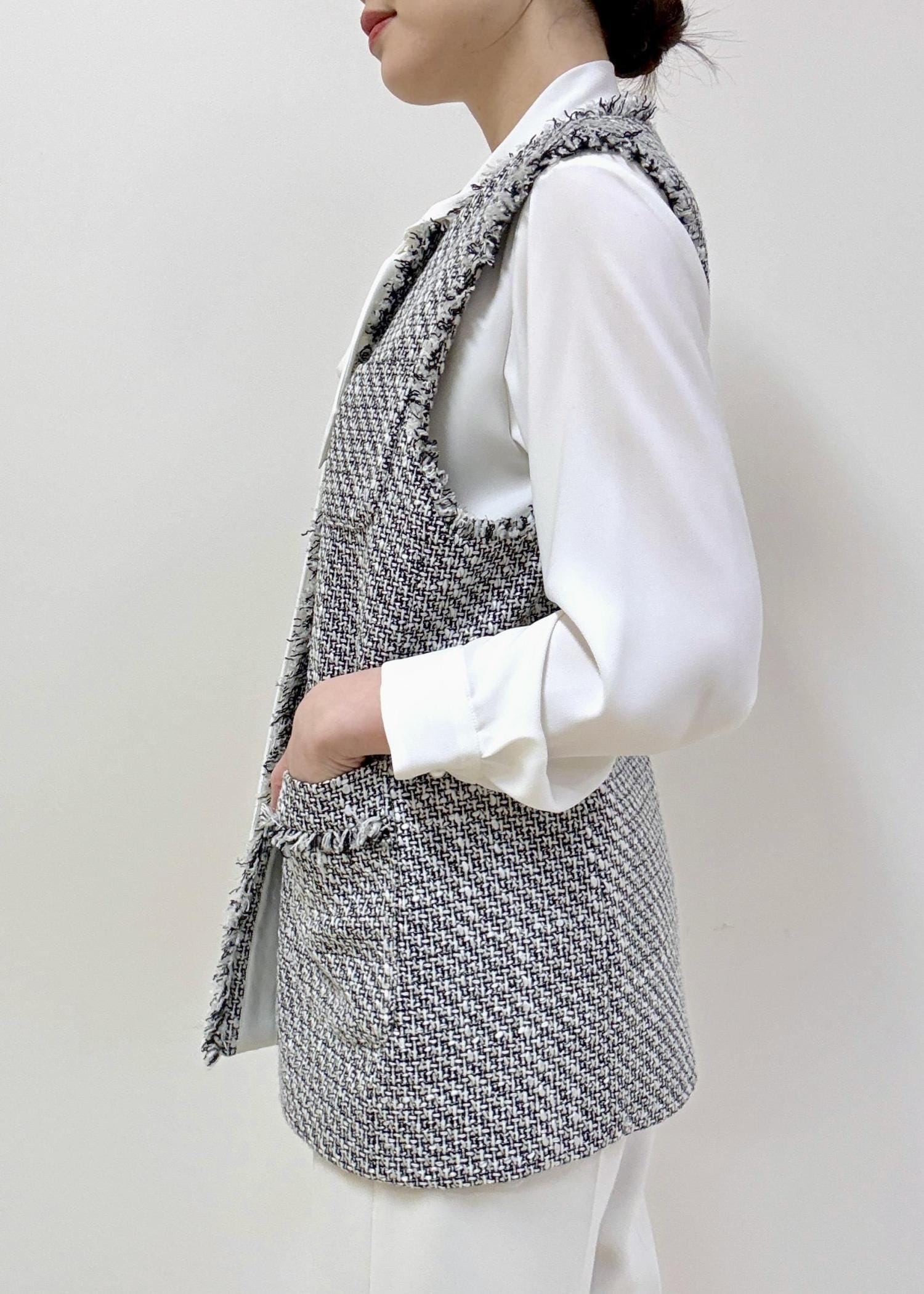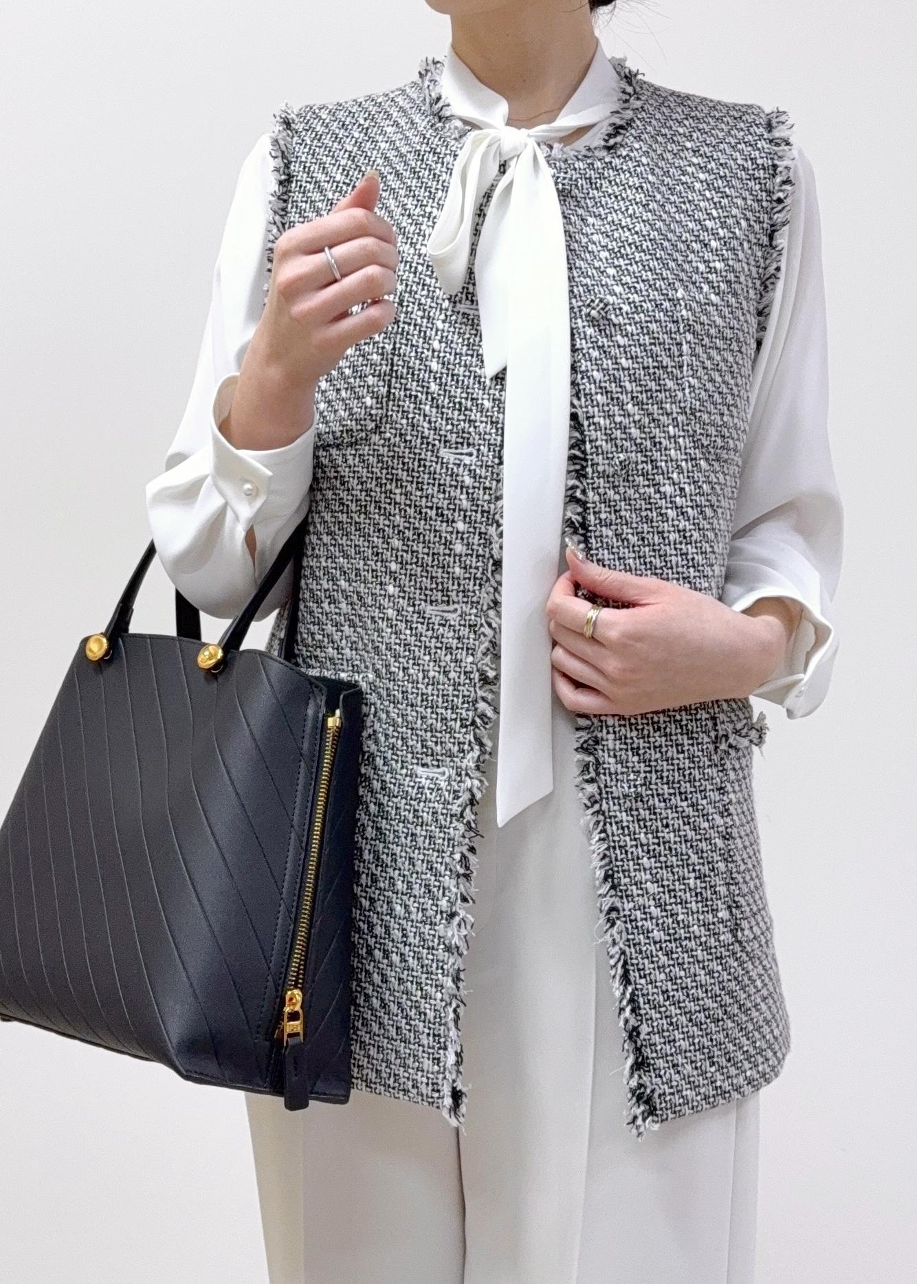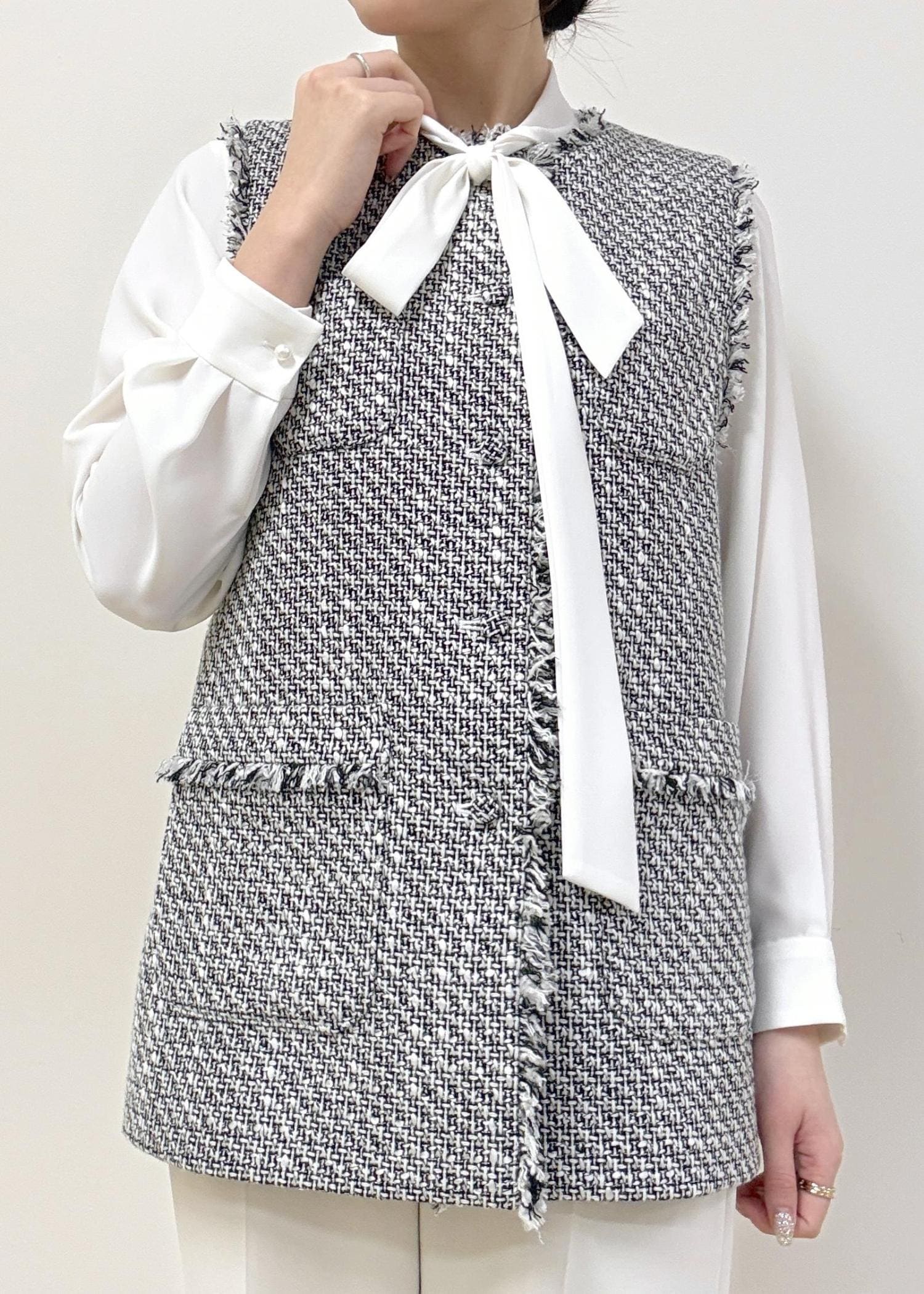 ROPÉミックスツイードジレベスト/26SSブラック系 / F¥39,600レビュー身長165cmでFサイズを着用しています。