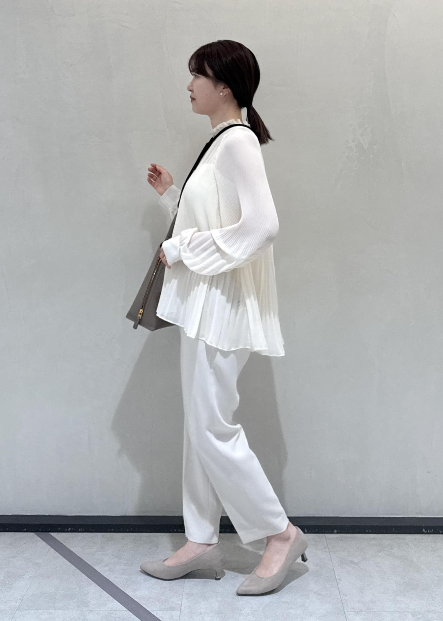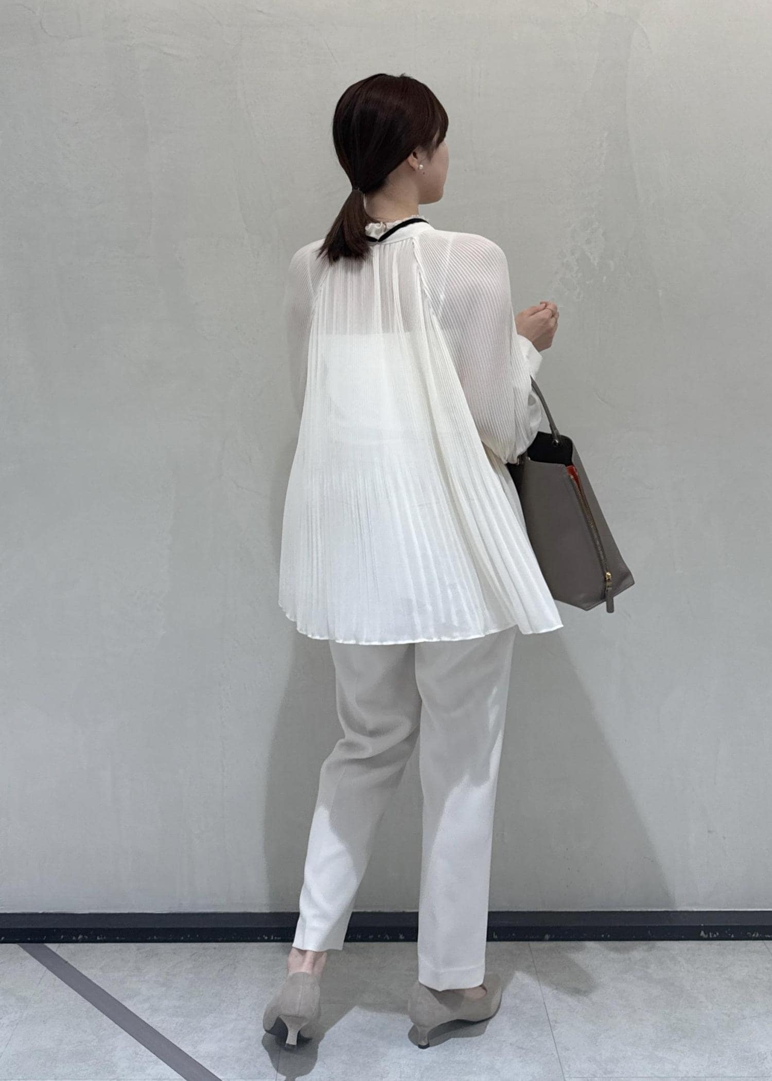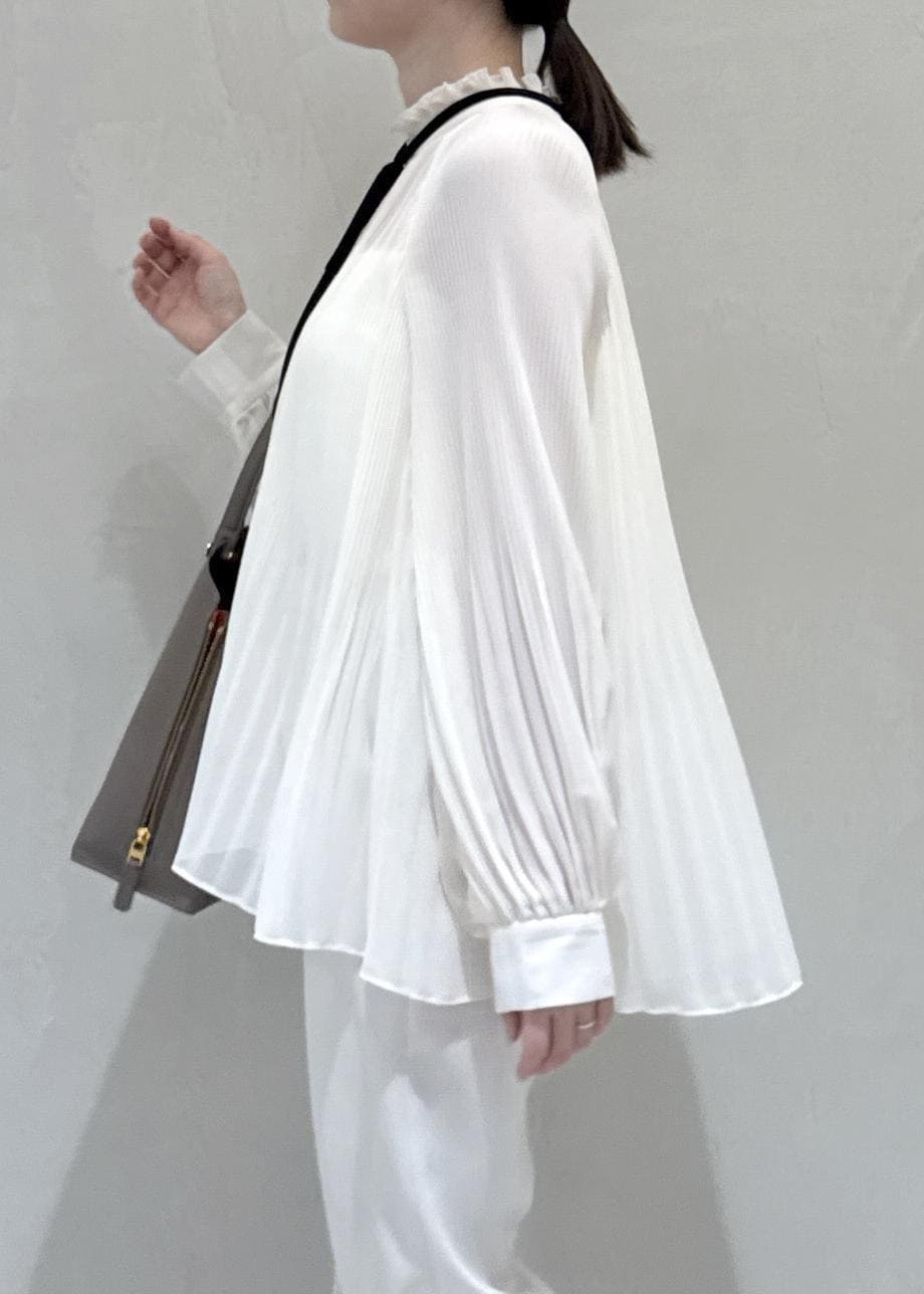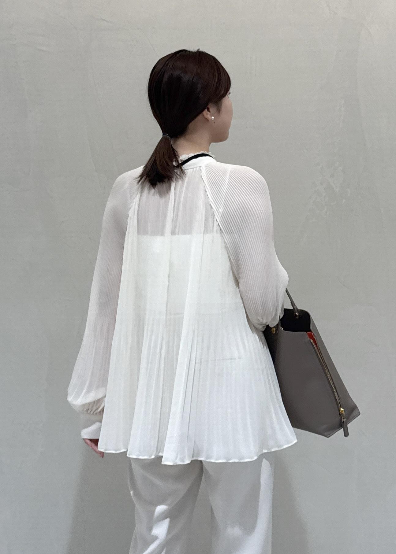 ROPÉプリーツデザインブラウス/イージーケアオフホワイト / F¥28,600レビュー身頃にゆとりを持って着られるサイズ感。