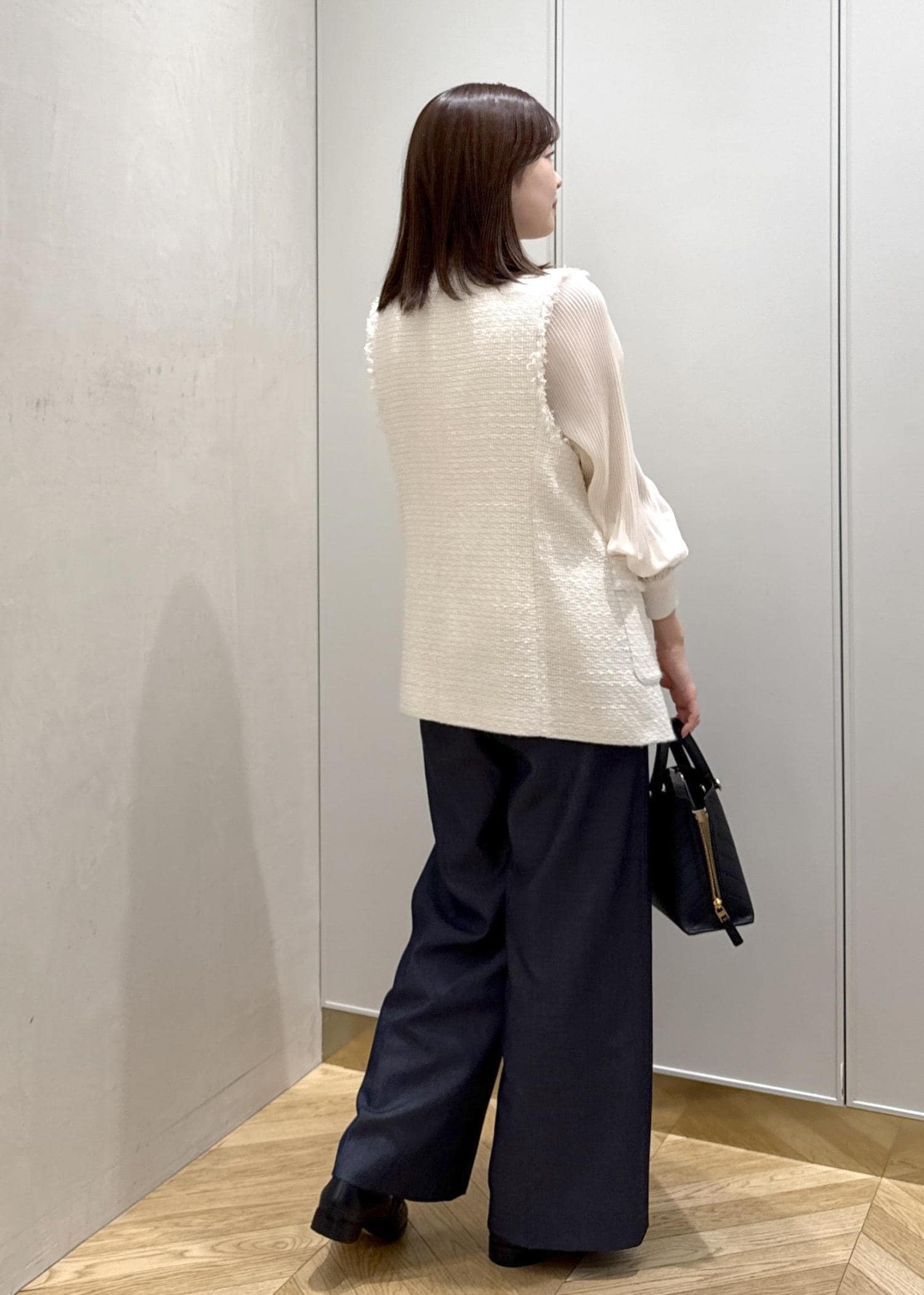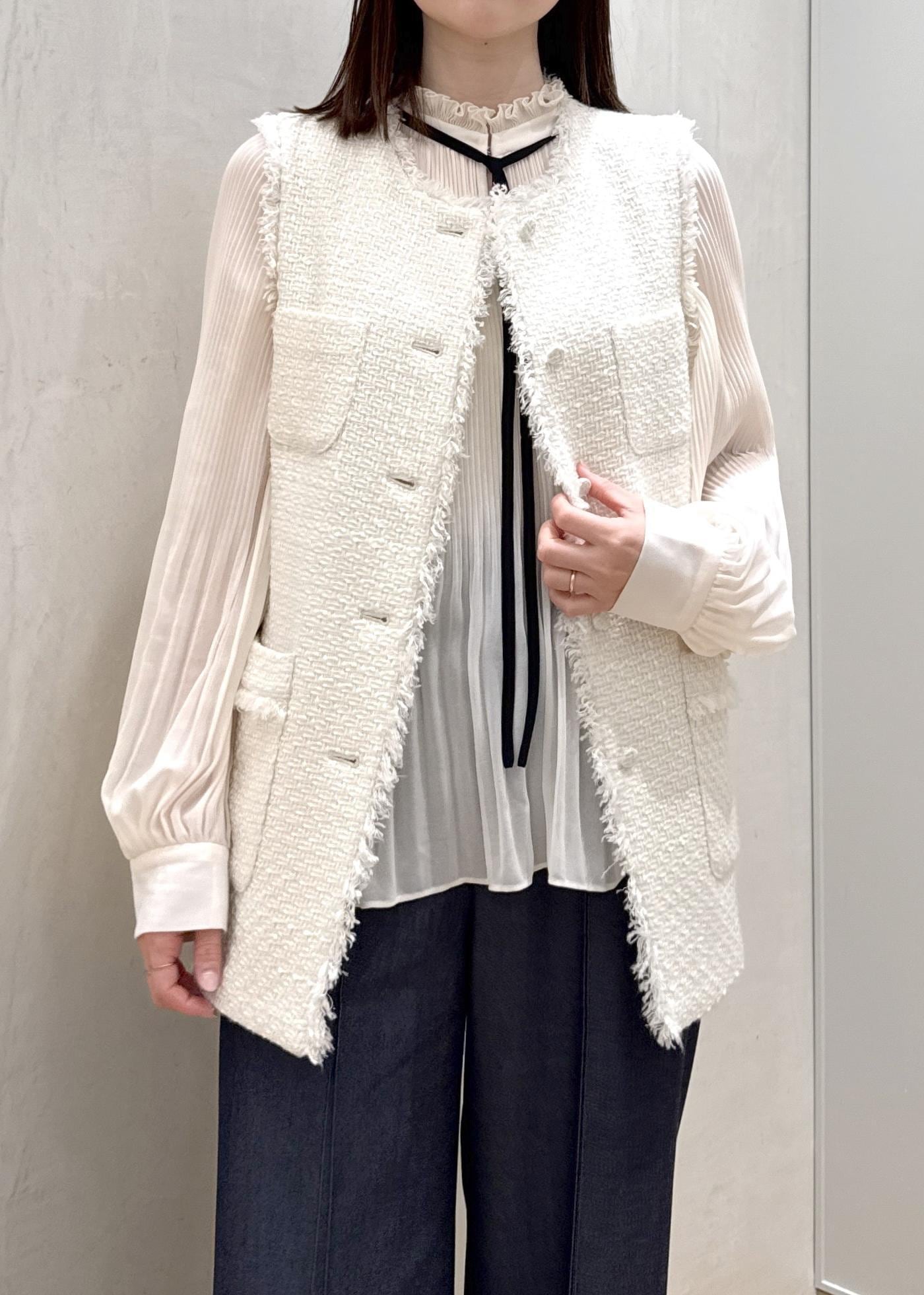 ROPÉミックスツイードジレベスト/26SSオフホワイト / F¥39,600レビューさりげなくラメが入った華やぐツイード素材。