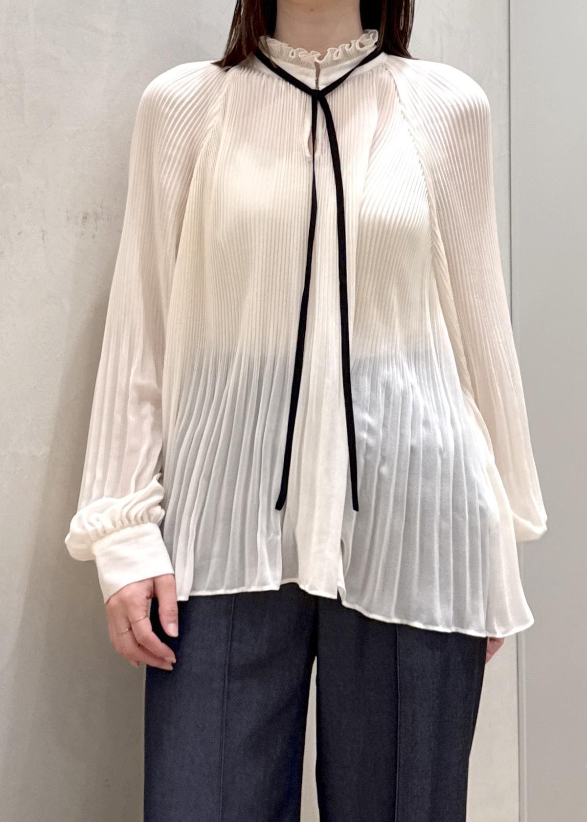 ROPÉプリーツデザインブラウス/イージーケアオフホワイト / F¥28,600レビュー身頃にゆとりを持って着られるサイズ感。