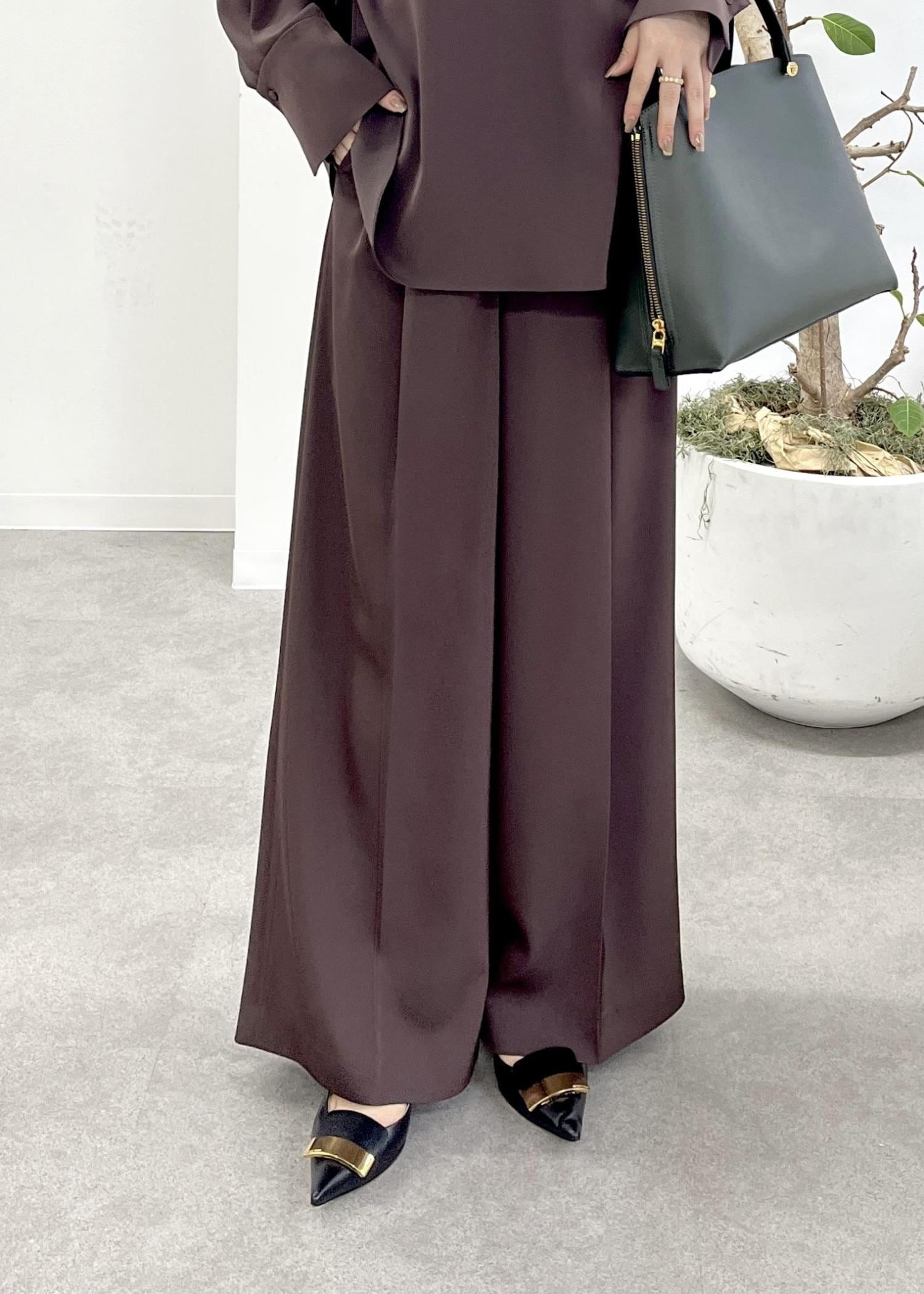 予約ROPÉイージータックワイドパンツ/セットアップ対応ダークブラウン / 38¥25,300レビューサンプルの38サイズを着用しています。