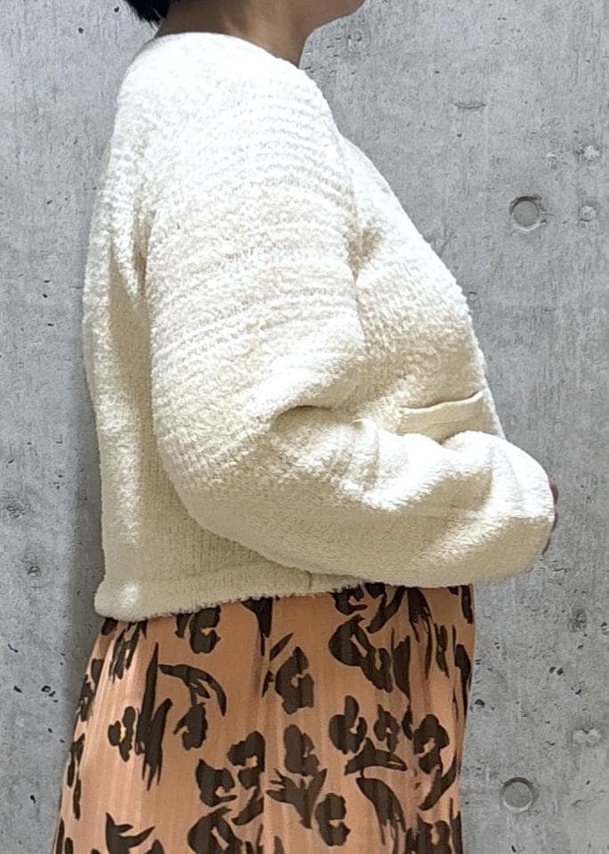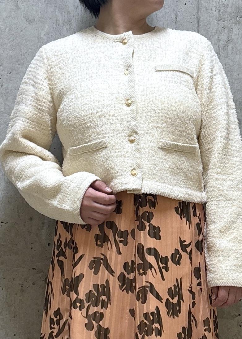 ROPÉツイードニットショート丈カーディガン/イージーケアキナリ / F¥37,400レビュー152cmでFサイズ着用