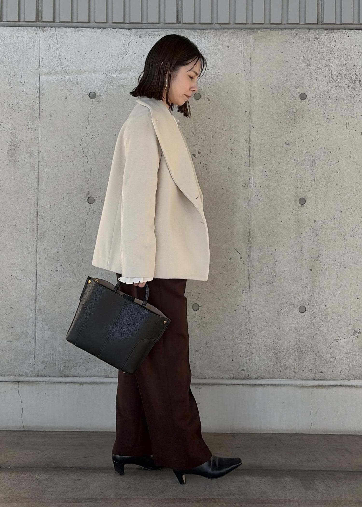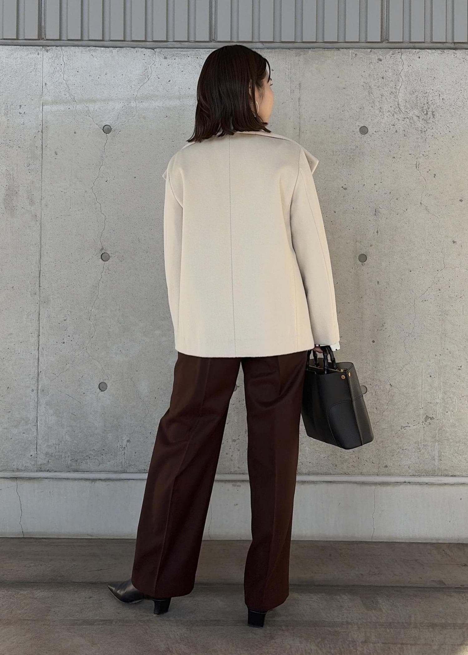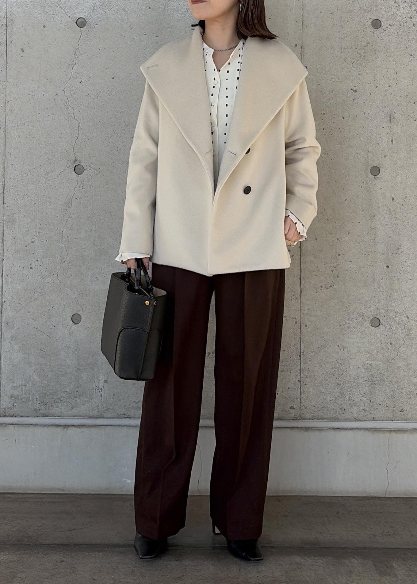 ROPÉプレミアムカシミヤ ショートコート【25AW】オフホワイト / 36¥53,900レビュー身長156cm、38サイズ着用。