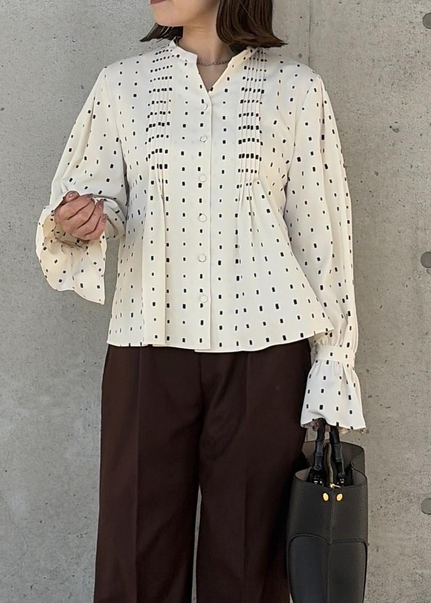 2BUY10%OFFROPÉスクエアドットプリントブラウス/イージーケアキナリ / F¥25,410レビュー身長156cm、Fサイズ着用。