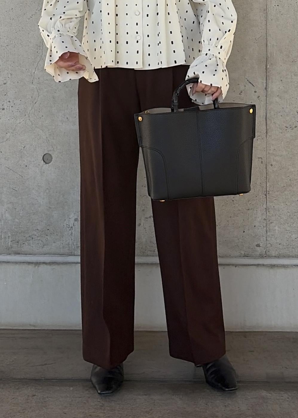 ストレート寄りのタックパンツ。