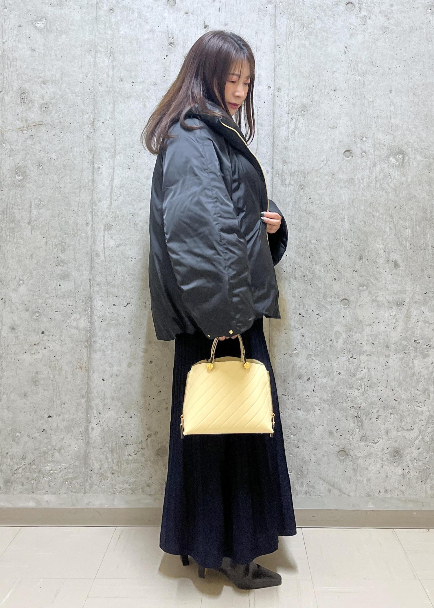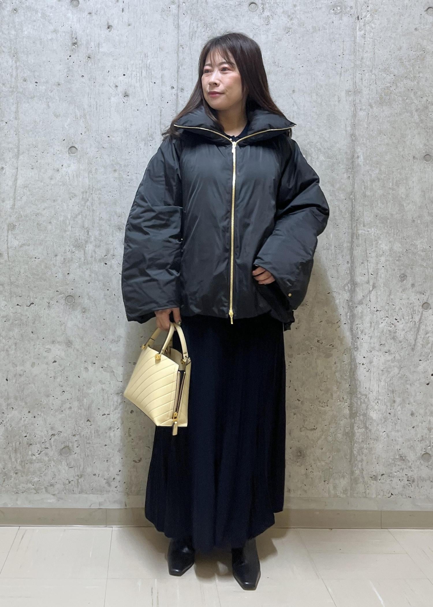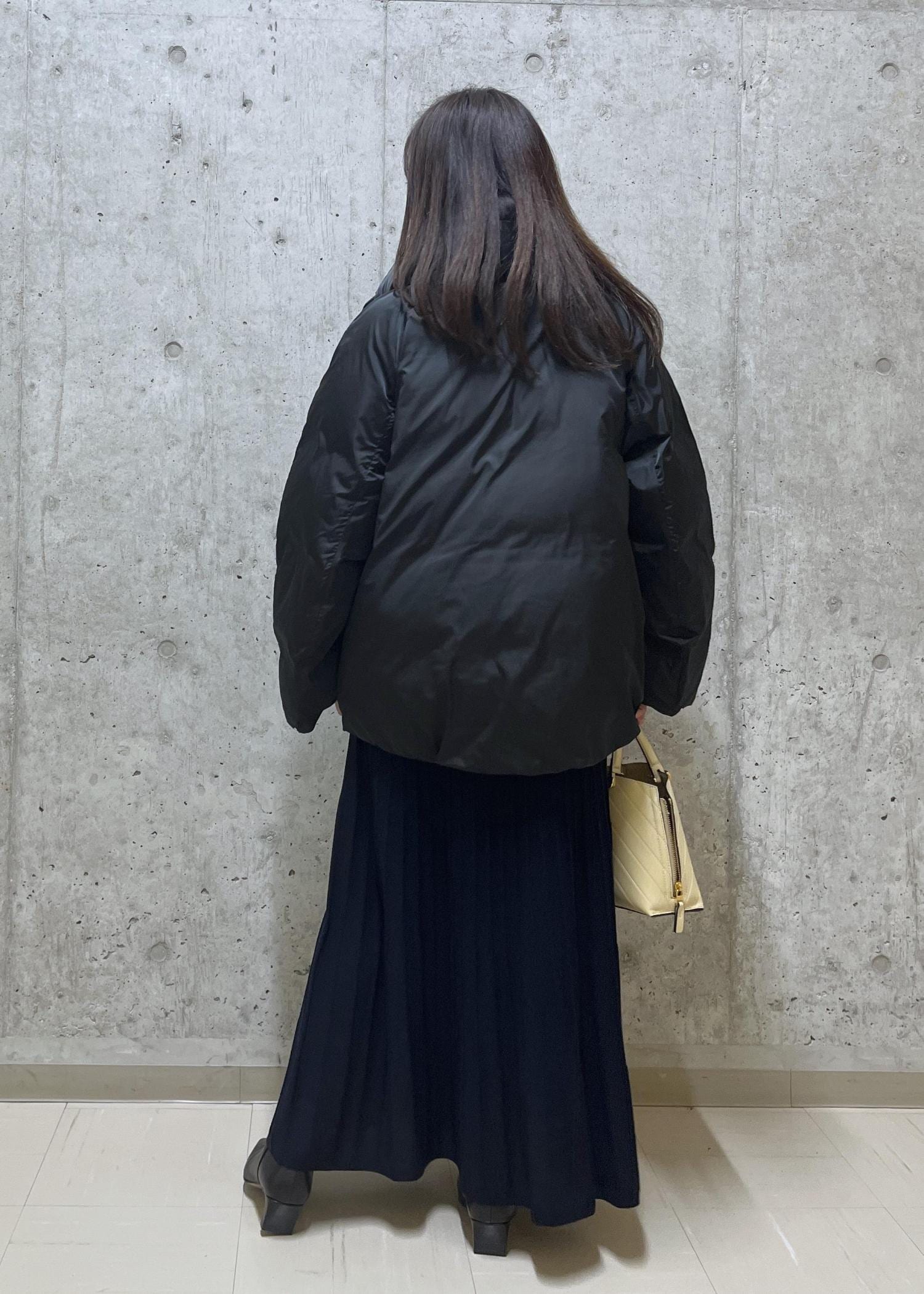 1枚で決まるワンピースにはダウンで少しカジュアルな雰囲気にしました。