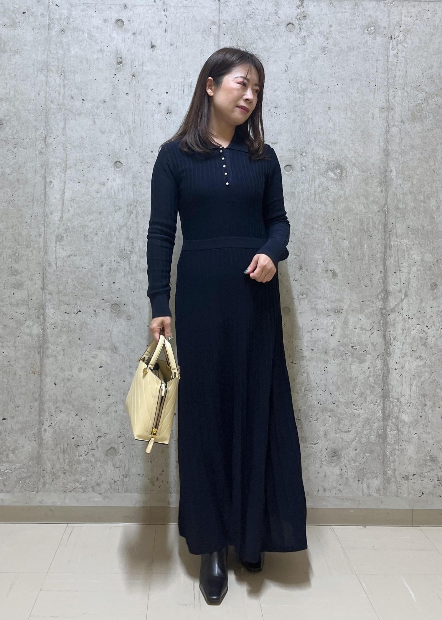 ROPÉパールボタンポロニットワンピース/イージーケアネイビー / F¥24,640レビューウエストの切り替え縦のラインが、脚長効果もありスタイル良く見えるワンピースです。
