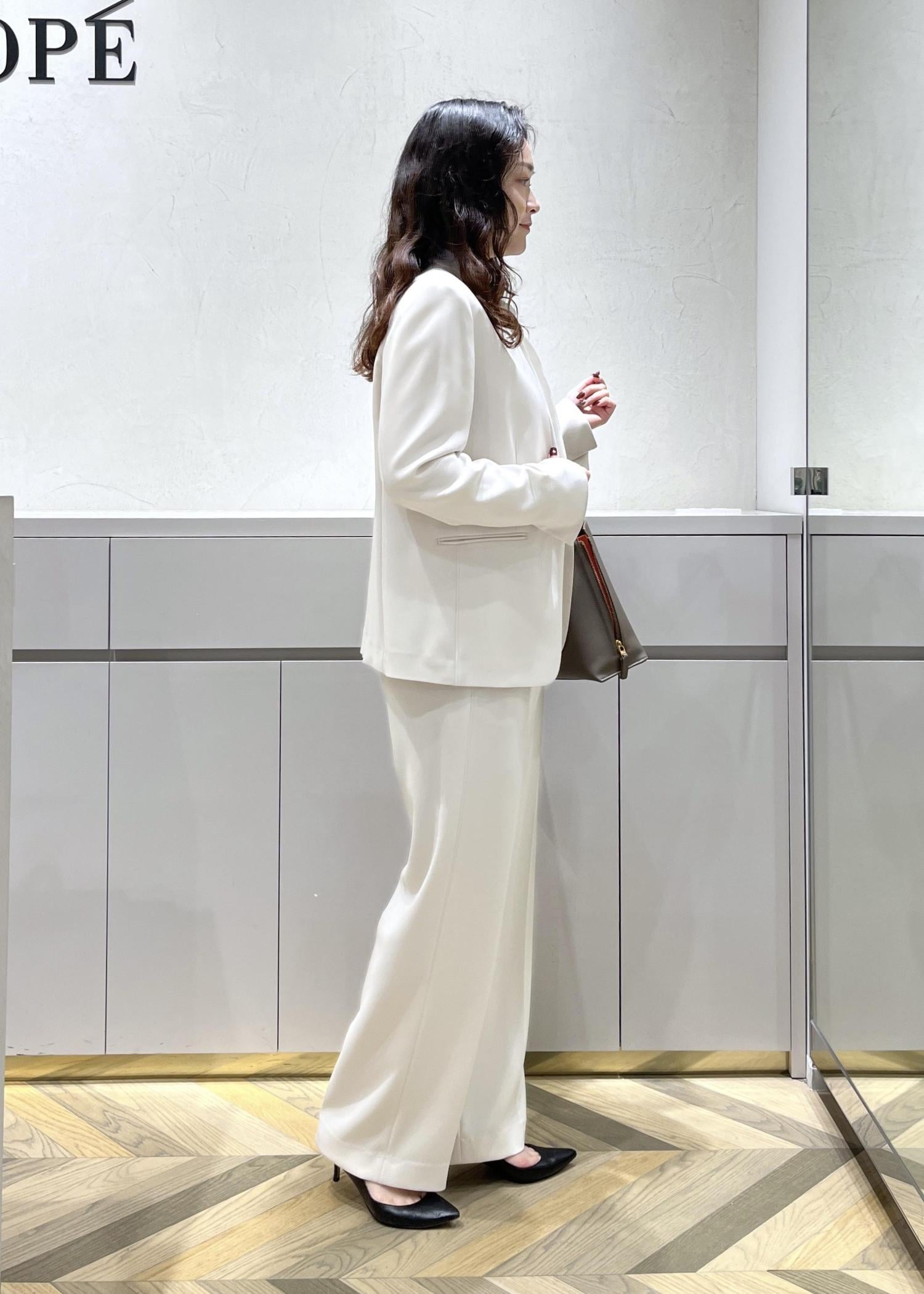 ROPÉトリアセダブルクロス Vネックジャケット/イージーケア・セットアップ対応・26SSベージュ / 38¥36,300レビュー38サイズを着用しています。