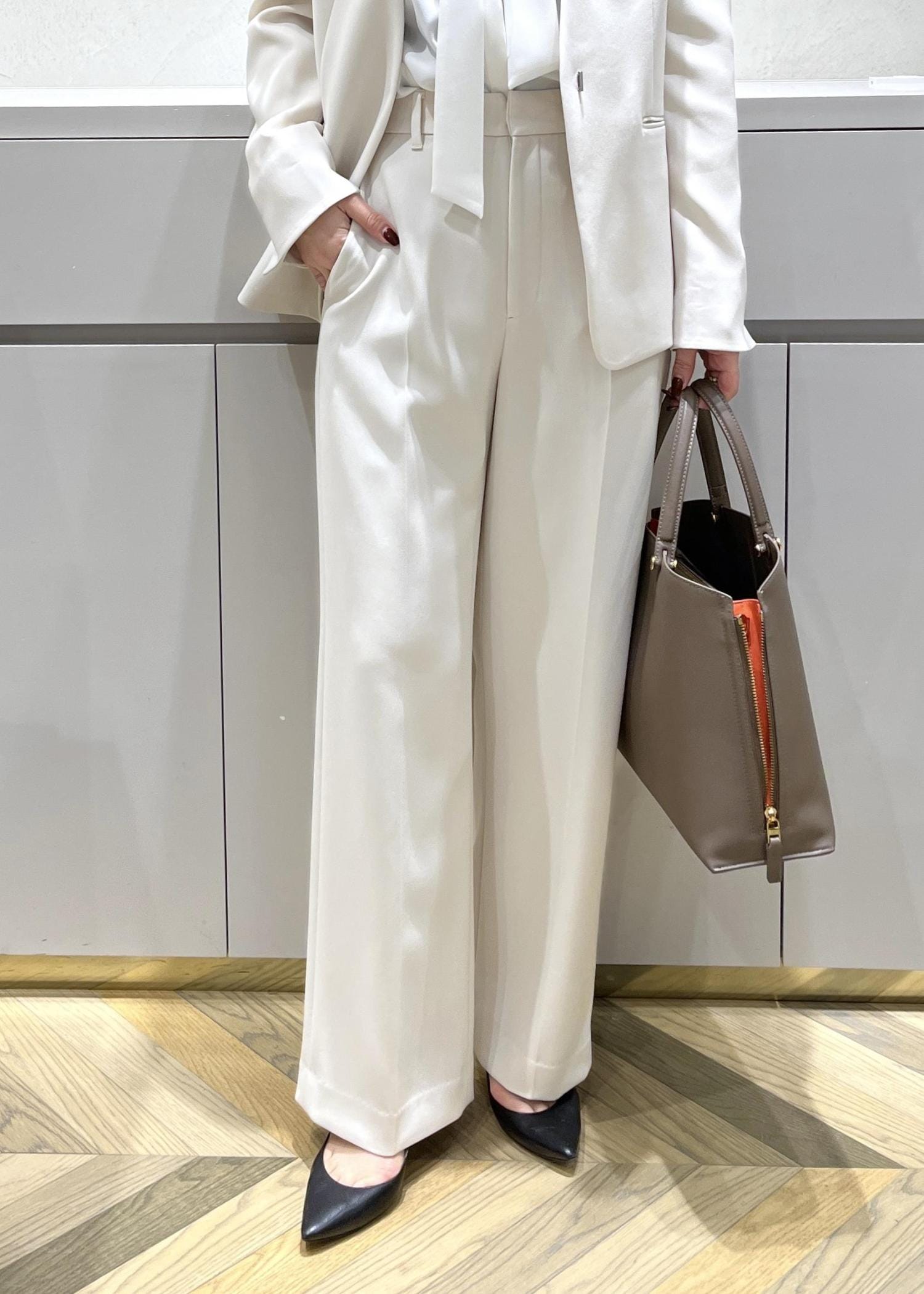 センタープレスが効いた、足がすっきり長く見えるシルエット。ベージュの裏地で下着の透け感も気にならず着用いただけます◎ -