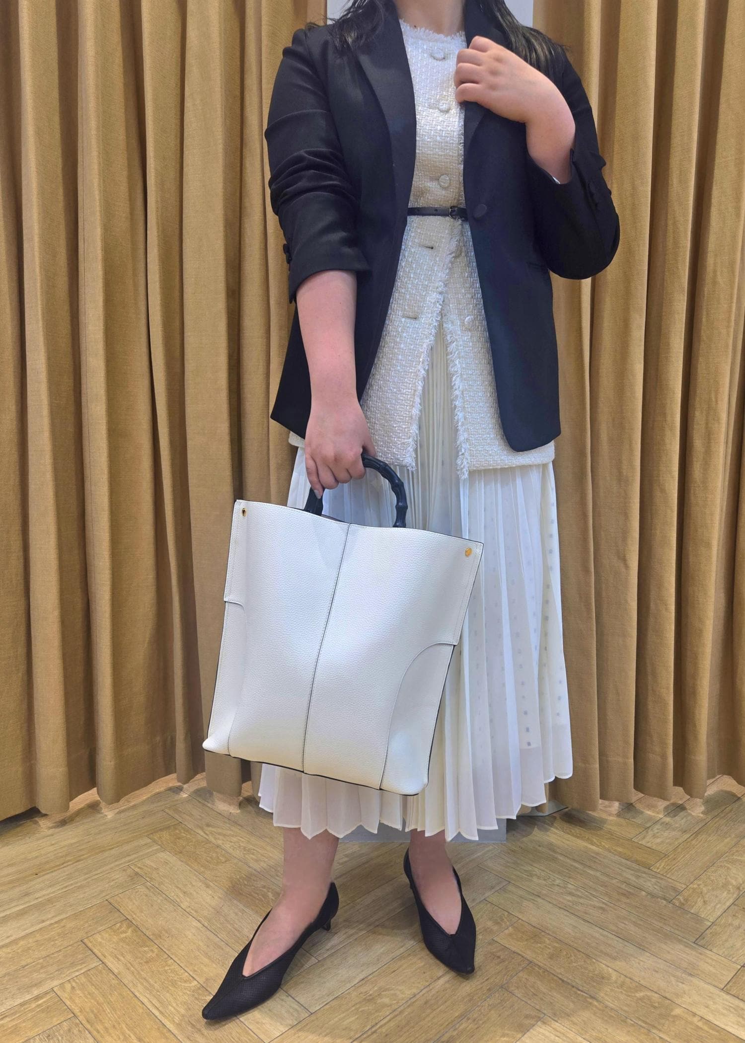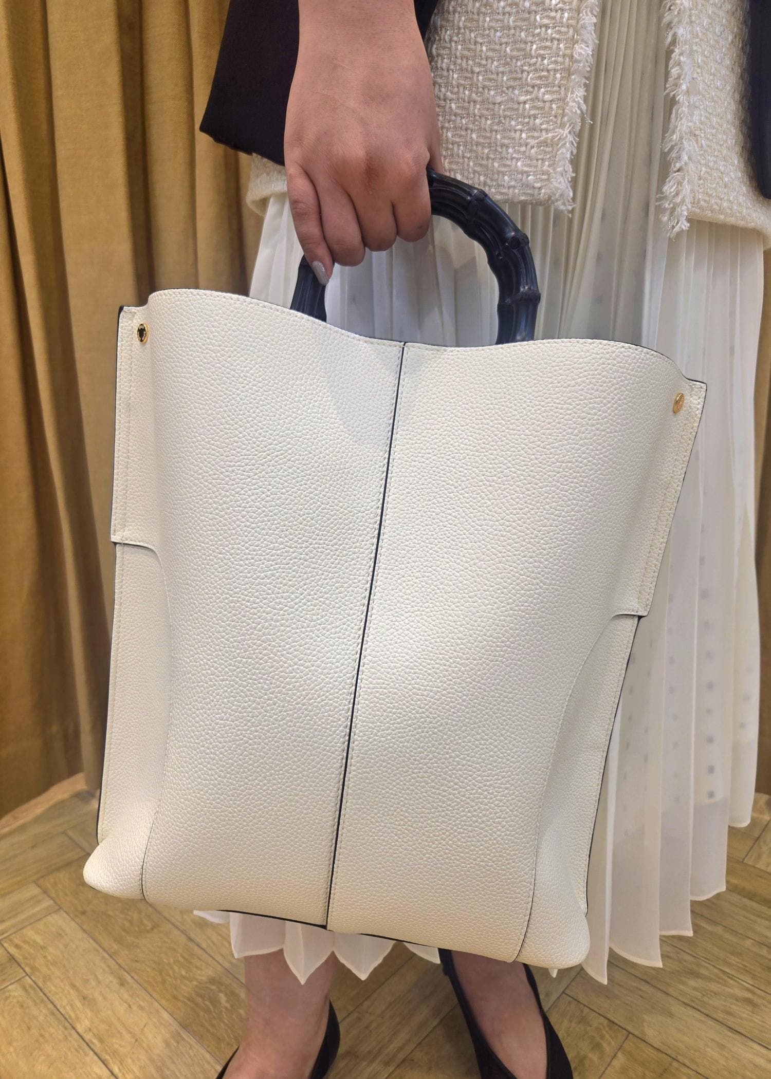 ROPÉ【E'POR】BAMBOO BAG Large【通勤】【A4対応】オフホワイト / F¥19,800レビューバンブーハンドルが高見えし、シンプルなデザインながらもA4が入るサイズ感でポケットもたくさんついているので収納しやすいです。