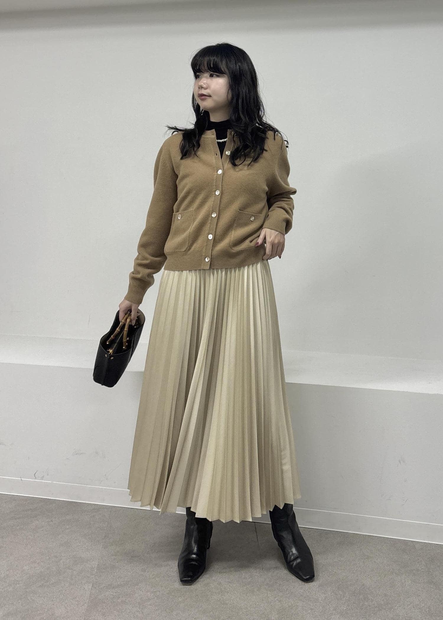 首元もしっかりと隠せるので暖かさはもちろん、丈が長すぎないのでスカートのシルエットも綺麗に見えます。