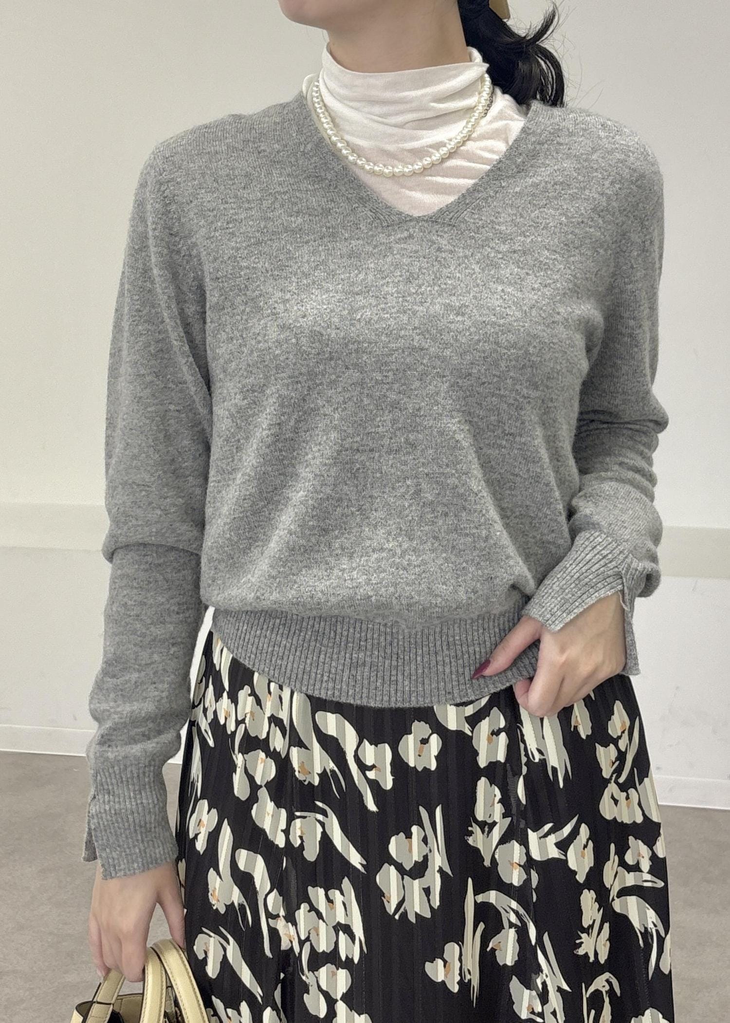 ROPÉカシミヤVネックニットプルオーバーグレー / F¥20,240レビュー159cm,Fサイズ着用。