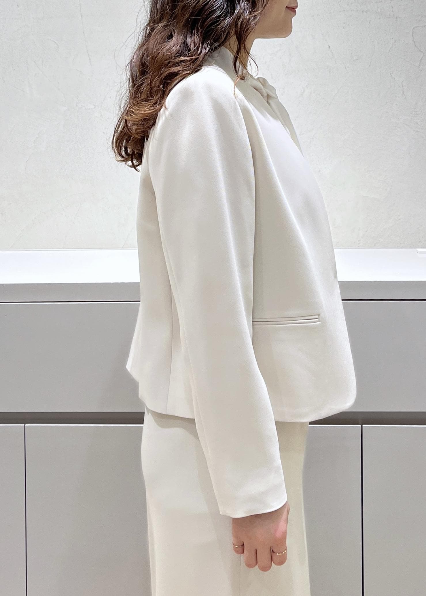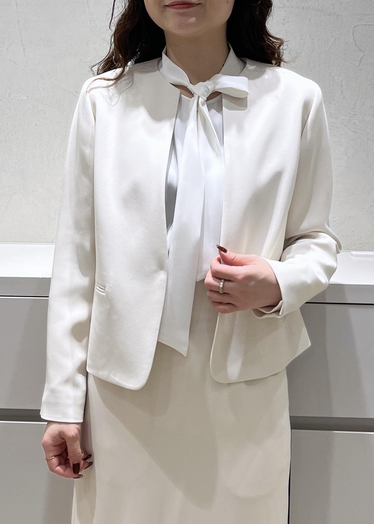 着丈は腰骨あたり、ワンピースやスカート合わせにおすすめの丈感です。