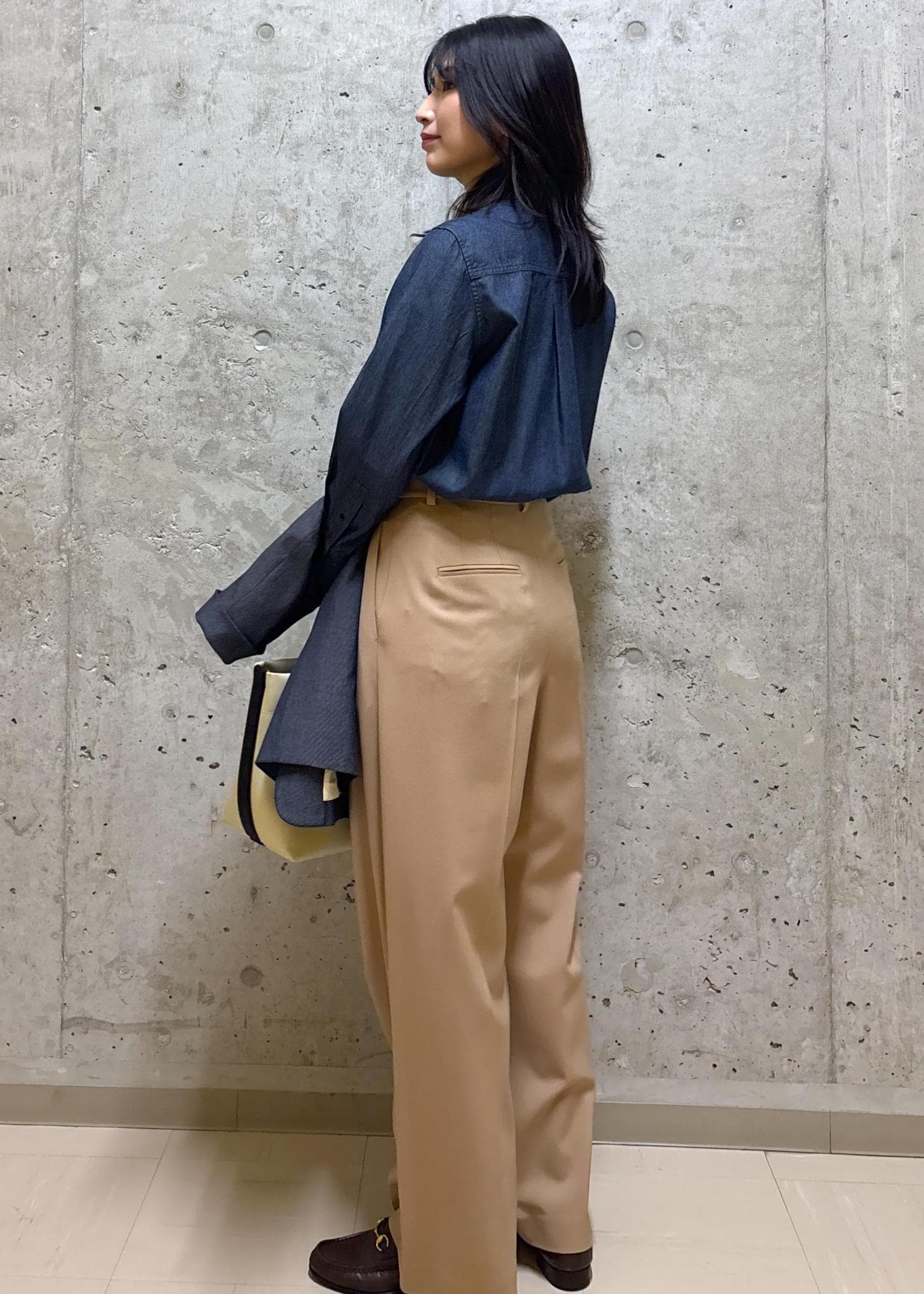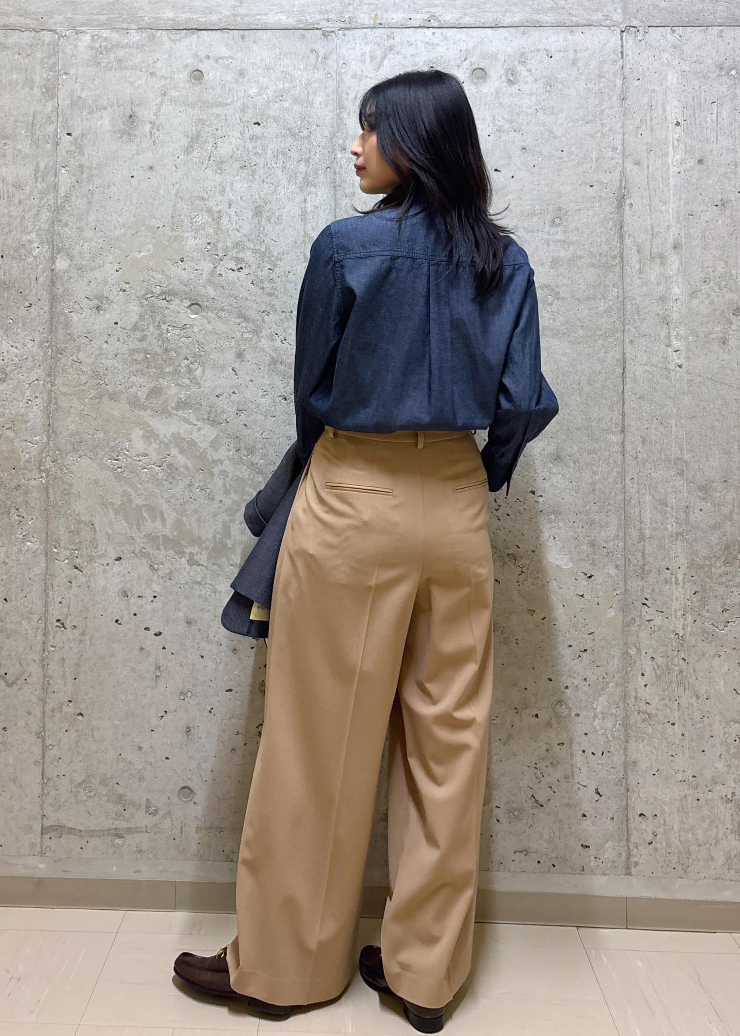 ウエストにワンタック入りの、ストンとした落ち感のあるワイドシルエット。