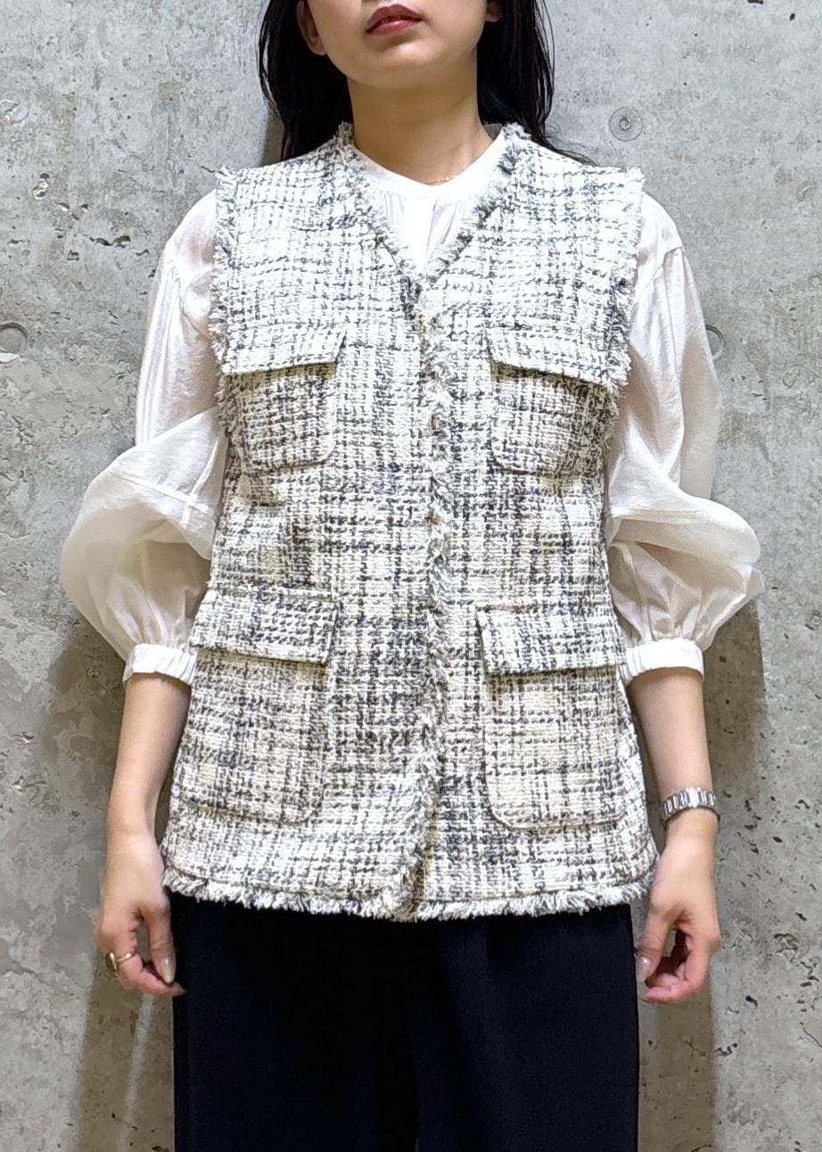 とても軽く、気軽に着やすいツイードジレです。